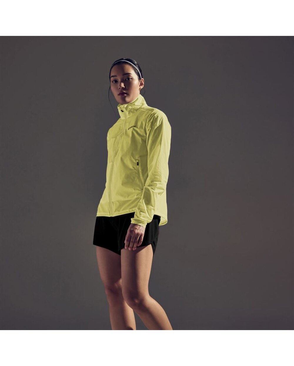 Women's windbreaker with a DWR finish perfectly resistant to wind, cold weather and light rain. The inner woven finish guarantees the removal of moisture from the skin and minimizes the material sticking to the skin, even if you only wear a short-sleeved T-shirt or tank top under the windbreaker. PROPERTIES AND MATERIALS The internal 3D structure of the fabric wicks moisture away from the skin very well and thus increases comfort during running or other activities Softly lined, ergonomically shaped collar Elastic inserts on the cuffs Full length front zip Two front zip pockets Drawstring at bottom hem Reflective details on cuffs, elbows, shoulders, waist and center back Weight: 142g Made from partially recycled material in the composition: 85% polyamide, 8% polyester, 7% elastane