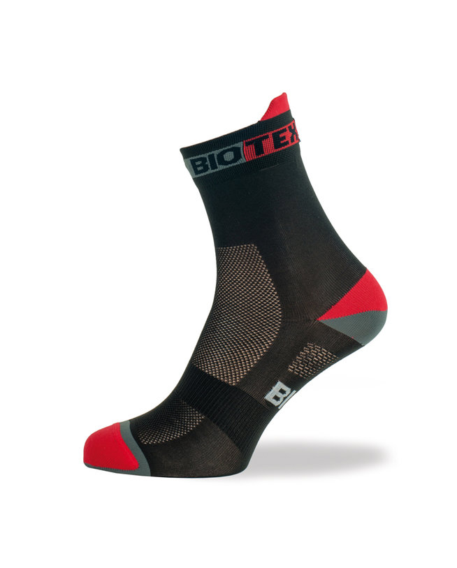 Summer mesh socks from polypropylene material. Manufactured with net weave on the higher part of the socks, it facilitates sweat perspiration, keeping your feet dry and fresh. The material on the sole and toes is reinforced to assure a higher tensile strength. They perfectly cling to the foot line thanks to the elastic band placed accros the foot, which holds the socksin place. Ideal for all sports, suitable in hot seasons.