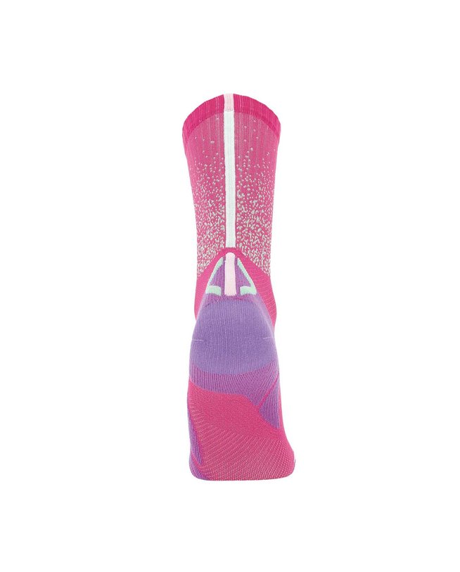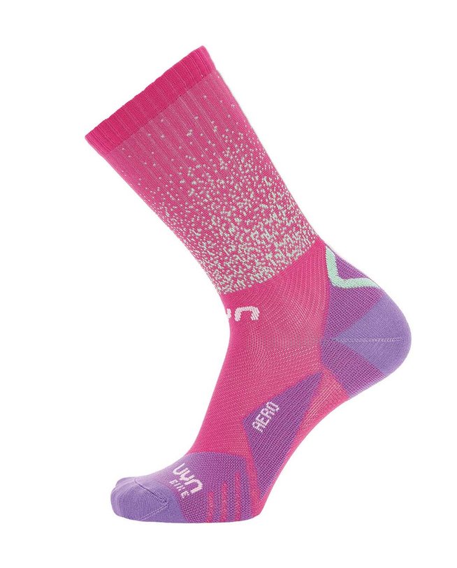 Lightweight and aerodynamics are the watchwords for Uyn Cycling Aero socks. This model is characterised by the three-dimensional structure of the leg-part, designed to increase the aerodynamic coefficient by reducing air resistance. The sock is made of the special Fibresist yarn, which facilitates climatizing air flow and is particularly resistant to abrasion. Three-dimensional micro-channels integrated into the inner surface allow air to circulate around the foot, keeping it comfortably dry and at the correct temperature, even during longer rides. Thanks to the Preshock Shield technology, the sock offers strategic protection of the most sensitive areas such as the Achilles tendon.