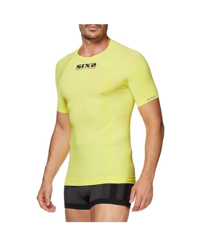 SIXS Carbon Underwear short-sleeve round neck t-shirt, a multi-sport product ideal in all conditions. Unlike the sleeveless model, the sleeve hugs the upper part of the arm which is subject to copious perspiration and keeps the skin dry. The lightest and most breathable polypropylene fiber on the market combined with a real carbon yarn that provides heat transmission and antistatic properties that protect the body from the electric charge caused by rubbing multiple synthetic fabrics against each other (condition typical of sports clothing).