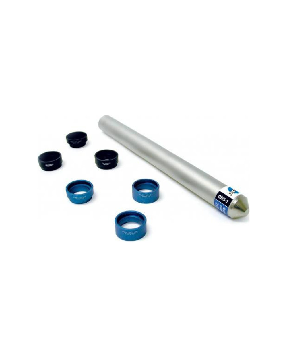The CRS-1 set includes a steel stop tube and a set of six duralumin adapters - 3 black for 1" diameter lower headstock cones and 3 blue for 1 1/8" diameter lower headstock cones.