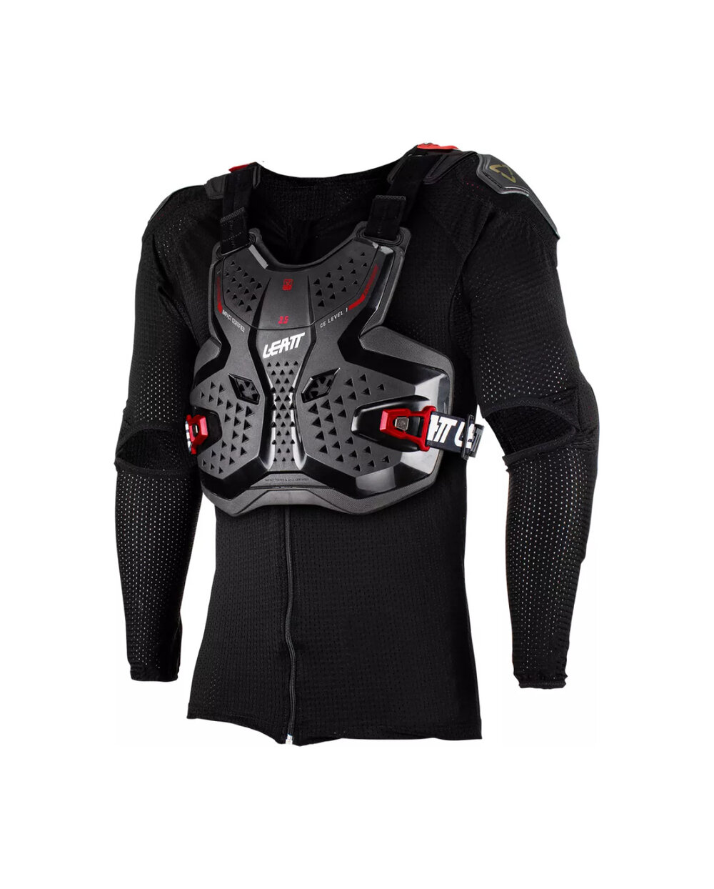 3.5 points Protector Junior is a new product for 2023, comes in 2 pieces, the first is a zip compression suit with built -in shoulder and elbow protectors and height -adjustable kidney belt, the second is a whole shell. CE chest and back protector certified for impacts.