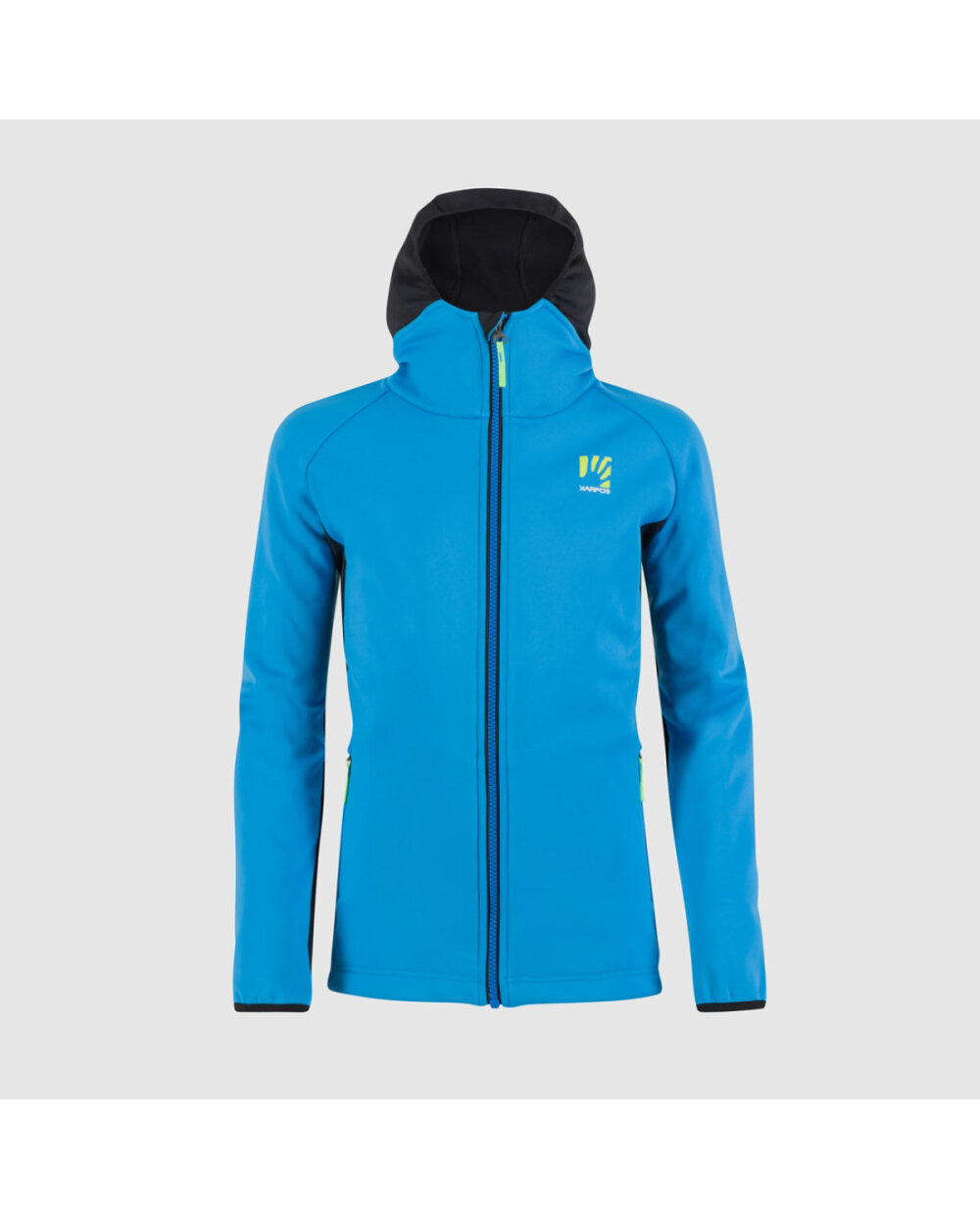 Children's jacket with hood Karpos Lavaredo is designed for running and other aerobic activities in winter. Thanks to the hybrid construction, the front side provides protection from the wind, heat maintenance, while the breathable sides and the back efficiently wick away sweat and prevent overheating. Key Features