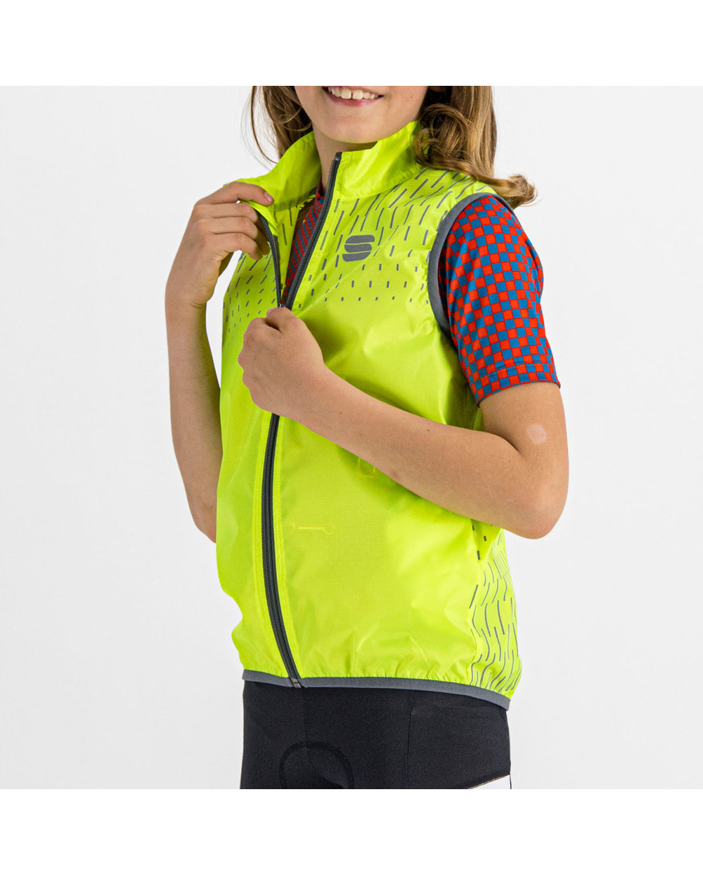 The vest is very nice, in a vivid fluorescent color - that's what I was looking for. Vest - windbreaker. Rather slim cut - for a slim child. Sizes are too small - order a higher age size :)