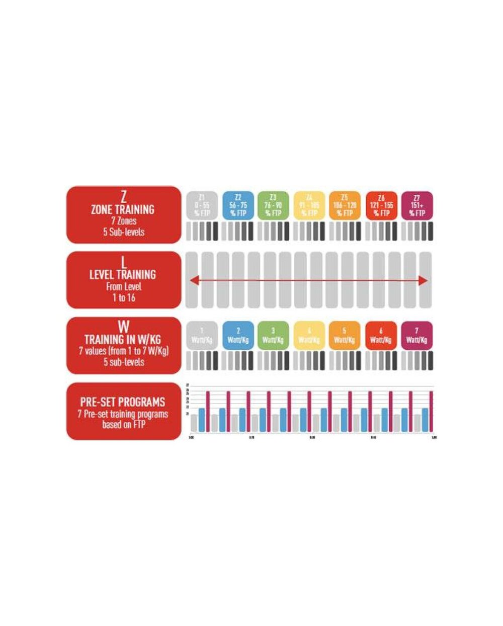 Perform specific exercises quickly and effortlessly, without the need for initial setup of training apps or software. Choose your preferred training mode directly from the device's buttons. Zone training available from Z1 to Z7, based on FTP. Watt/kg trainings in the range from 1 to 7. Resistance level exercise, from 1 to 16. Seven preset training programs based on FTP. Compatible with all direct drive trainers, wheel trainers and interactive rollers using the ANT+ FE-C protocol. Easily installs on all handlebars using the Garmin rear mount or O-ring mounting systems included in the package. Made of waterproof and sweat-resistant materials.