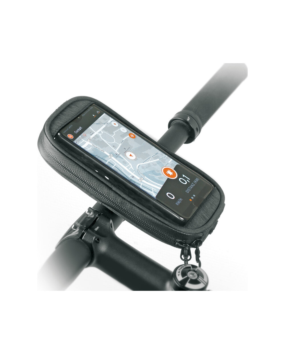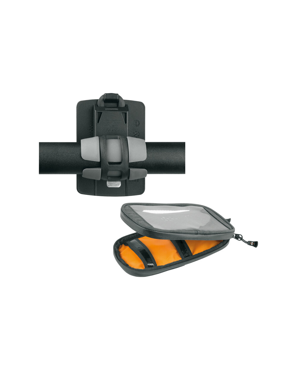 The SKS SMARTBOY PLUS phone holder is designed to securely attach larger smartphones to the handlebars of a bike or stroller without the need for tools. A waterproof case is included to protect your device from splashes and rain. Thanks to the transparent film, the phone can be operated comfortably, while the area around the "Home" button allows fingerprint unlocking directly through the film. The case also provides additional storage space for keys, money or a flat power bank.Maximum phone size: 155x80x15 mm
