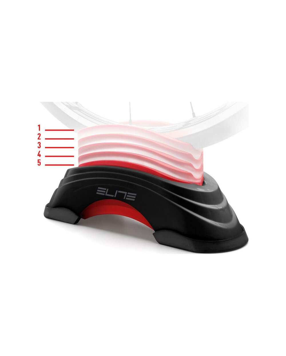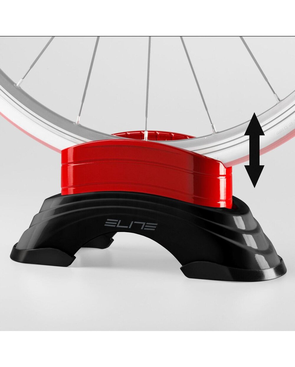 Adjustable pad under the front wheel. Simulates flat terrain, even climbs.