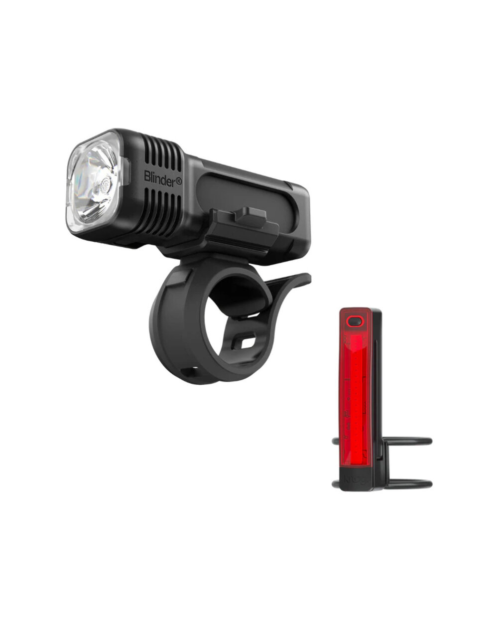 The Knog Blinder 400 & Plus is a perfectly balanced set of lights that combines powerful front lighting with an intelligent and flexible rear light. The Blinder 400 front light is compact but durable - it offers 400 lumens and a concentrated 18° beam that cuts through the darkness perfectly and provides a daylight color temperature, reducing eye fatigue during night rides.Its durable composite nylon body hides a rechargeable battery. 1850 mAh, which guarantees reliable performance even during prolonged use. Thanks to the simple attachment system, you can put it on or take it off in a few seconds without tools.The Knog Plus rear light is one of the most versatile on the market - you can attach it to the seat post or, thanks to the integrated clip, attach it to a backpack, jersey or even a sock. No matter how you drive, it ensures perfect visibility from behind.Both lights offer multiple lighting modes (still and flashing) and USB charging without the need for a cable – just plug them directly into the USB port.Main advantages: