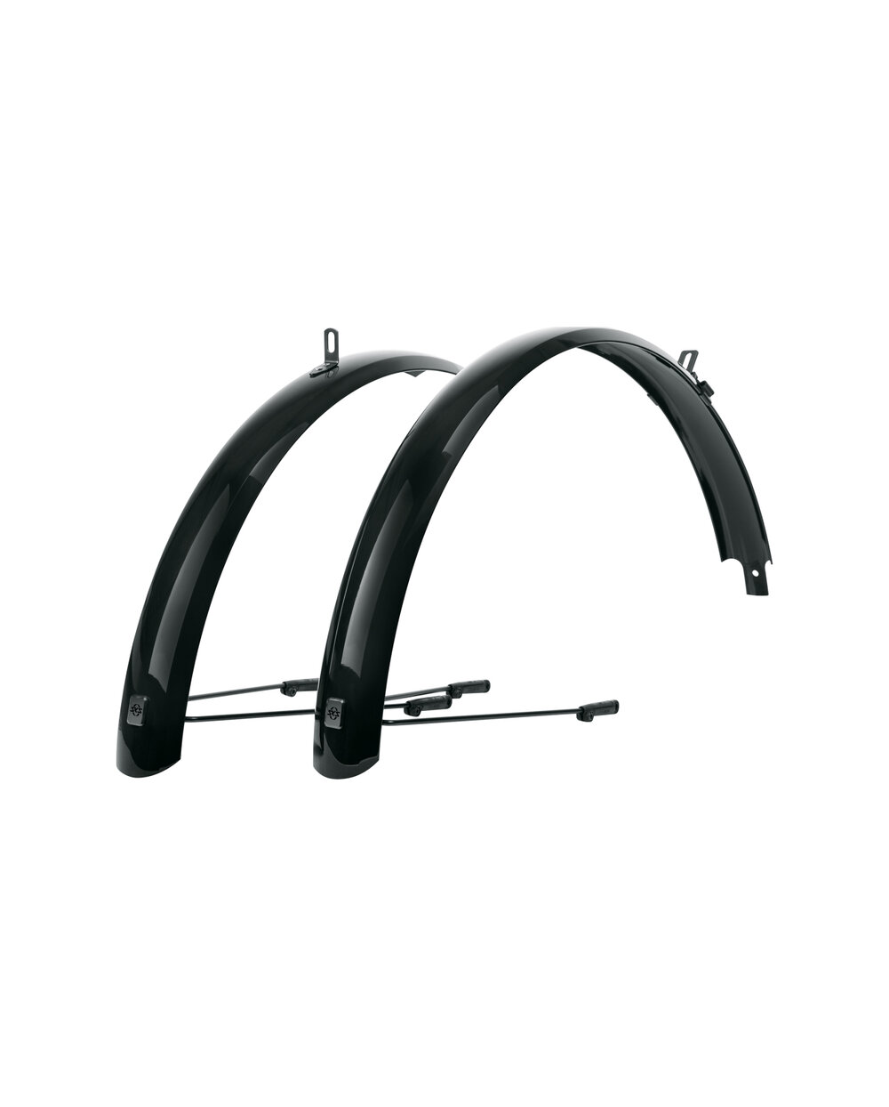 SKS Bluemels Basic is a set of fenders made of robust sandwich construction. Their shiny design can impress, reliably protects against dirt and splashing water. Thanks to the flexible sandwich construction, in which ultra-fine aluminum strips are embedded in a plastic coating, the fenders are extremely robust, rigid and resistant to corrosion. They serve as excellent protection thanks to their mounting close to the casing. Whether on dirt roads or forest roads, BLUEMELS Basic mudguards offer excellent all-round protection. The ESC safety system disconnects the struts if branches are caught between the spokes of the wheel so that the wheel cannot get stuck.Includes a set of struts, a solid stainless steel bridge and mounting material.• Sandwich design made of aluminum/plastic