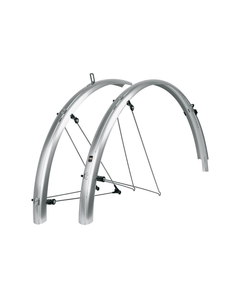 SKS Bluemels Basic is a set of fenders made of robust sandwich construction. Their shiny design can impress, reliably protects against dirt and splashing water. Thanks to the flexible sandwich construction, in which ultra-fine aluminum strips are embedded in a plastic coating, the fenders are extremely robust, rigid and resistant to corrosion. They serve as excellent protection thanks to their mounting close to the casing. Whether on dirt roads or forest roads, BLUEMELS Basic mudguards offer excellent all-round protection. The ESC safety system disconnects the struts if branches are caught between the spokes of the wheel so that the wheel cannot get stuck.Includes a set of struts, a solid stainless steel bridge and mounting material.• Sandwich design made of aluminum/plastic • Robust, rigid and resistant to corrosion • ASR resp. ESC safety system • Solid stainless steel bridge • Made in Germany