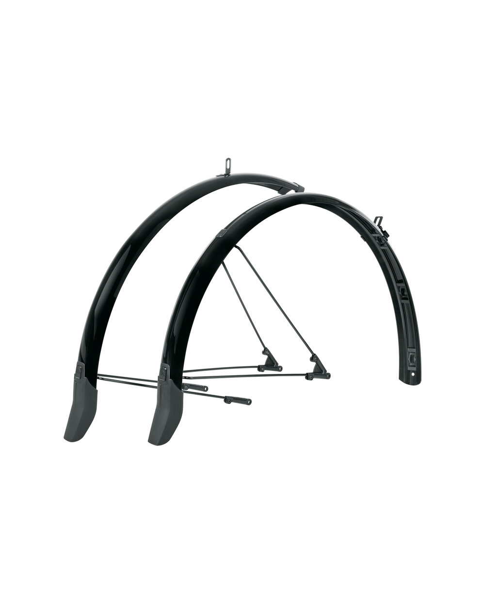 Set of fenders with an innovative cable routing system The improved set of BLUEMELS CABLE LINE fenders is equipped with an innovative cable routing system to which the cabling can be fixed using clamps. Spoilers provide optimal protection against splashing water. Thanks to the flexible sandwich construction, in which ultra-fine aluminum strips are embedded in a plastic coating, the glossy black mudguards are extremely robust, rigid and resistant to corrosion. Ideal for use on bikes with racks. Thanks to the integrated cable tunnel, BLUMELS CABLE LINE mudguards are ideal for use on bikes with luggage racks. The tail light cable can be easily and quickly installed under the fender. The clips ensure a secure fit and prevent the cable from coming into contact with the jacket. Includes mounting kit, sliding bridge and mounting hardware. - Aluminum/plastic sandwich construction - Robust, rigid and corrosion-resistant - With innovative cable routing system - Ideal for use on a bike with a rack - Made in GermanySuitable for wheel size:27.5" (650b)". 28", 29 " 11846 BLUEMELS CABLE 28″ 45 mm 11848 BLUEMELS CABLE 28″ 55 mm