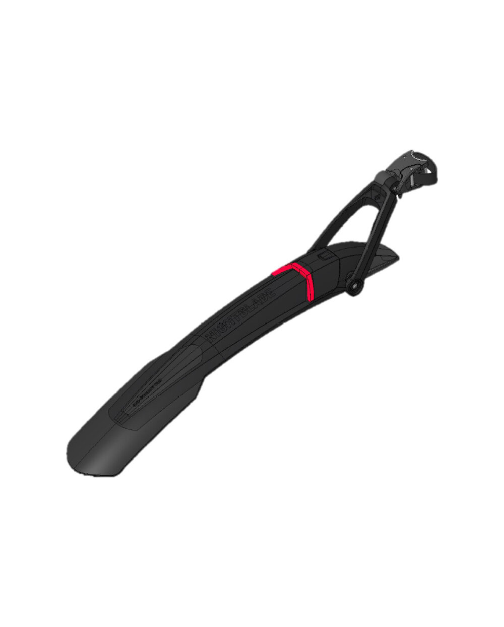 The Nightblade mudguard is a modern solution for mountain bikes that combines optimal protection against splashing water with greater safety thanks to the integrated rear light. Equipped with a rechargeable battery, this light can be easily removed and charged via USB. The fender is designed with a simple clamping system that allows it to be mounted on most saddles, and thanks to two joints, it can be perfectly adapted to any bike. It is suitable for wheels of sizes 26" to 27.5"+, with a maximum tire width of 3.0" and a width of 52-75 mm. The length of the mudguard is 620 mm.The rear light with an integrated rechargeable battery can be removed and charged using a USB connection.
