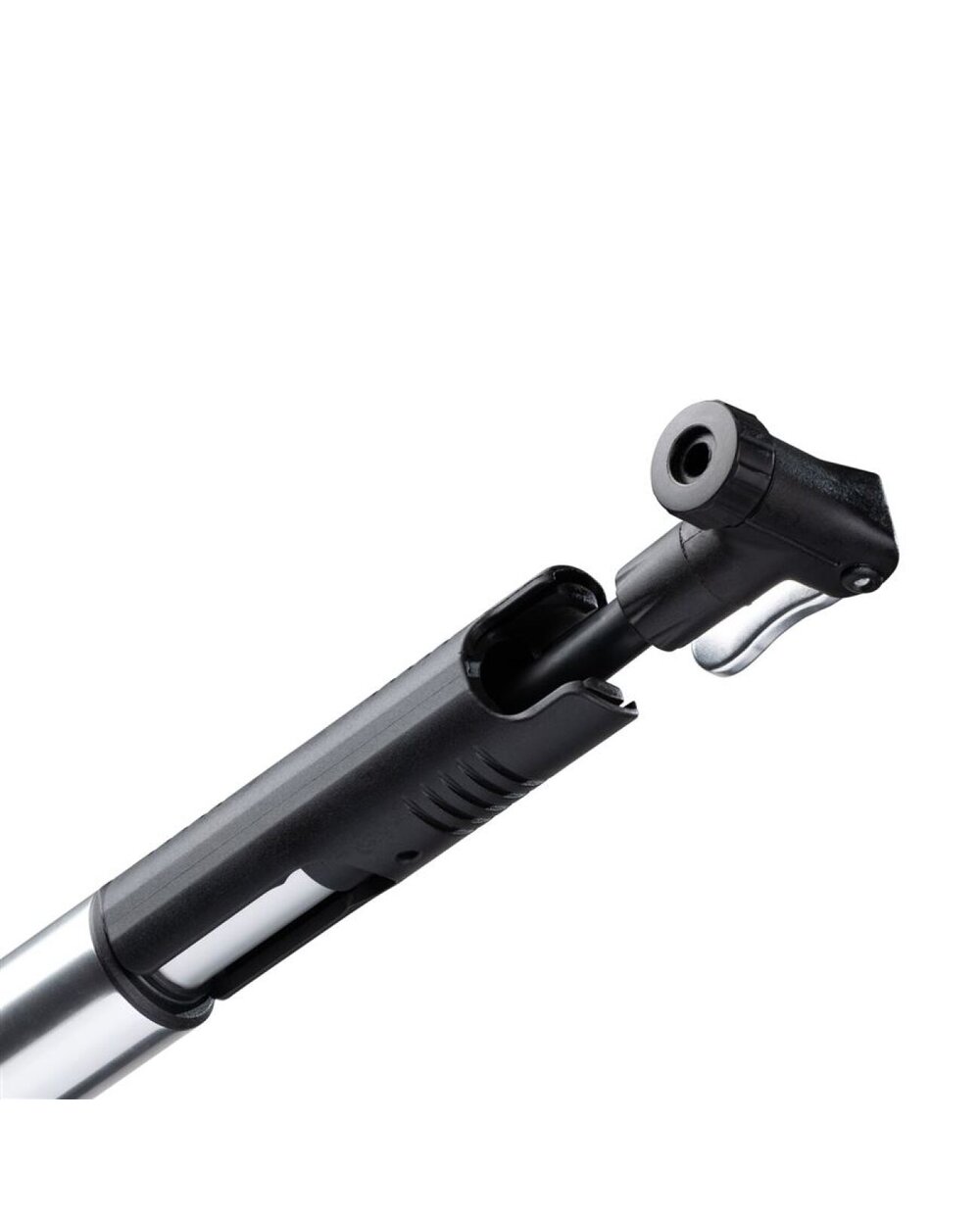 Unique lightweight mini pump that fits comfortably in your backpack and with which you can inflate your bike even on the trail. The pump is equipped with a rubberized base, a tilting foot stand for great stability during inflation, a folding handle, a hidden hose inside the body and a patented magnetic head for both types of valves.
