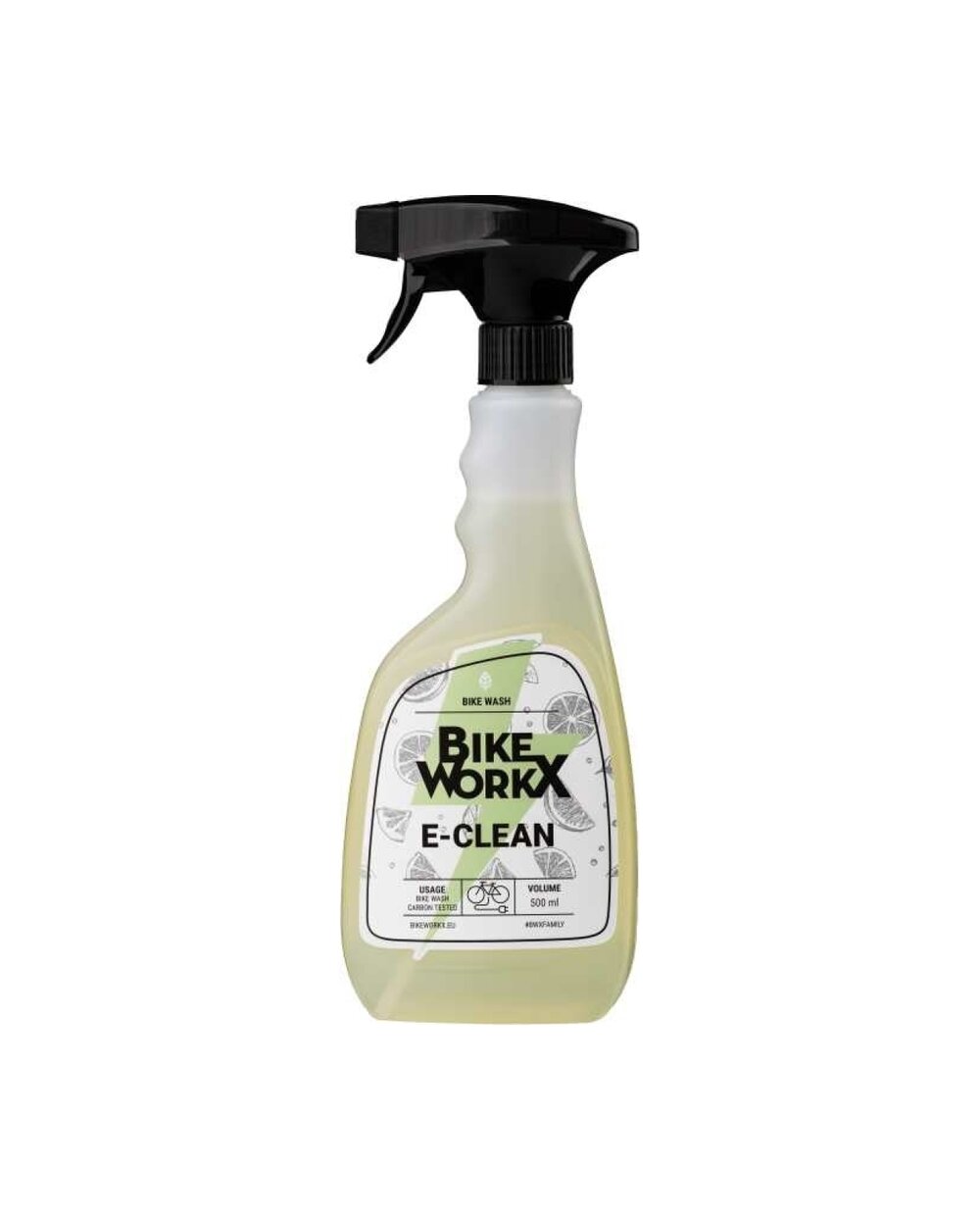 You can also use E-Clean to clean your chain, but because it is water-based, its consumption will be much higher than Drivetrain Cleaner, which is specifically designed for cleaning chains and cassettes. The spray produces foam so it is not ideal for chain washers.