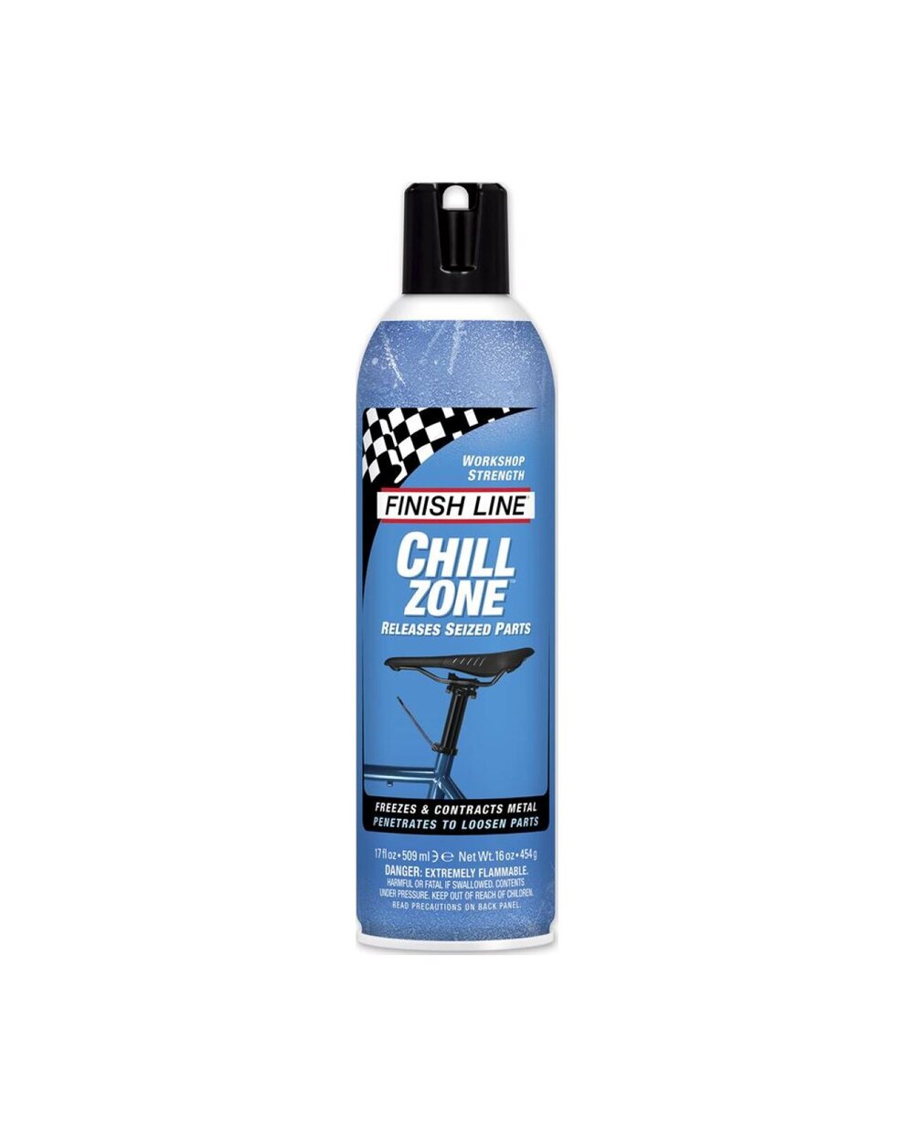 The Chill Zone is your last resort if you need to loosen an overgrown seat post from the frame, a rusted bolt, a fused thread or get an old rusty chain moving again. The preparation freezes any metal down to -45 °C. This causes the metal to shrink and loosen the joint. Simply spray Chill Zone on the item for 10 to 20 seconds, wait 60 to 90 seconds and loosen the part.
