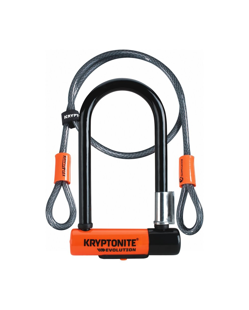 13mm "horseshoe" hardened MAX-PERFORMANCE steel from the renowned Krytptonite brand.Also included is a 4' KRYPTOFLEX cable used to secure the wheel or accessories. High security disc lock body. Sliding protective cover protects the lock body and extends its life. Package includes lock holder for easy transport. Protective vinyl coating. Package includes 3 keys - 1 key with LED. Key Safe program - if keys are lost, send 1st pair of standard replacement keys free of charge. (registration required) Dimensions: 8.3cm x 17.8cm Protection level: 7/10