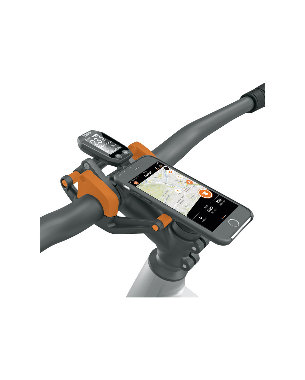 One size fits all: the COMPIT mobile phone holder can be easily mounted on different bike handlebars. In addition to the clamping arms, the complete kit with included spacers also offers the option of mounting the mobile phone holder on e-bikes with a central display, so that the smartphone and on-board computer form a closed unit on the handlebars.
