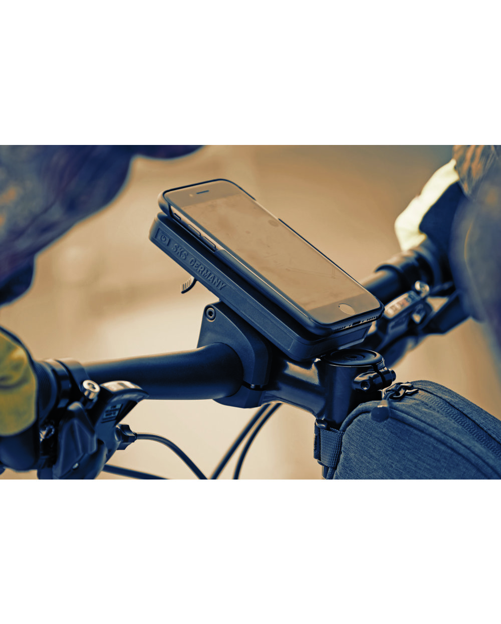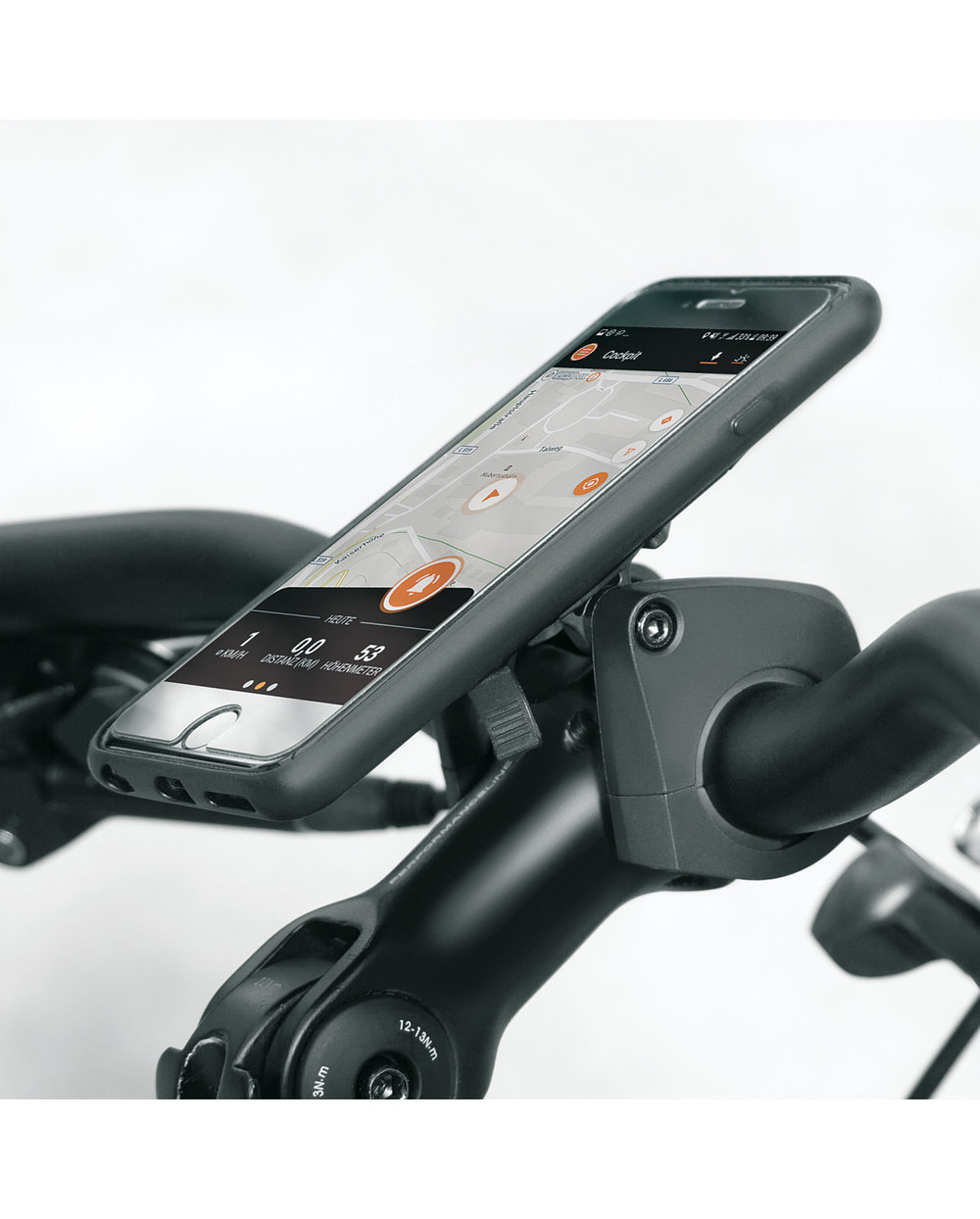 With a single twist, the smartphone can be attached to the bayonet mount horizontally or vertically, and just as quickly removed again. In addition, it can be moved to the desired position using the angle adjustment. COMPIT holds the mobile phone firmly and securely even on uneven terrain.