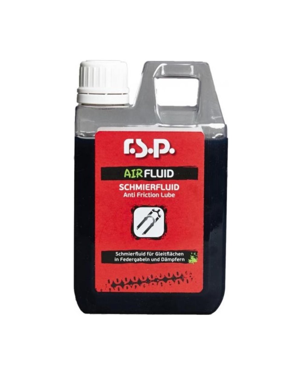 RSP Air Fluid is a special lubricant for lubricating the sliding surfaces and plain bearings of suspension forks and shock absorbers. Applicable to air chambers to lubricate air seals to prevent shock/fork seizure. Reduces friction and protects seals against wear. Due to added additives, Air Fluid is extremely long lasting without the need for replacement, has anti-corrosive properties and its viscosity is not affected by external temperature.