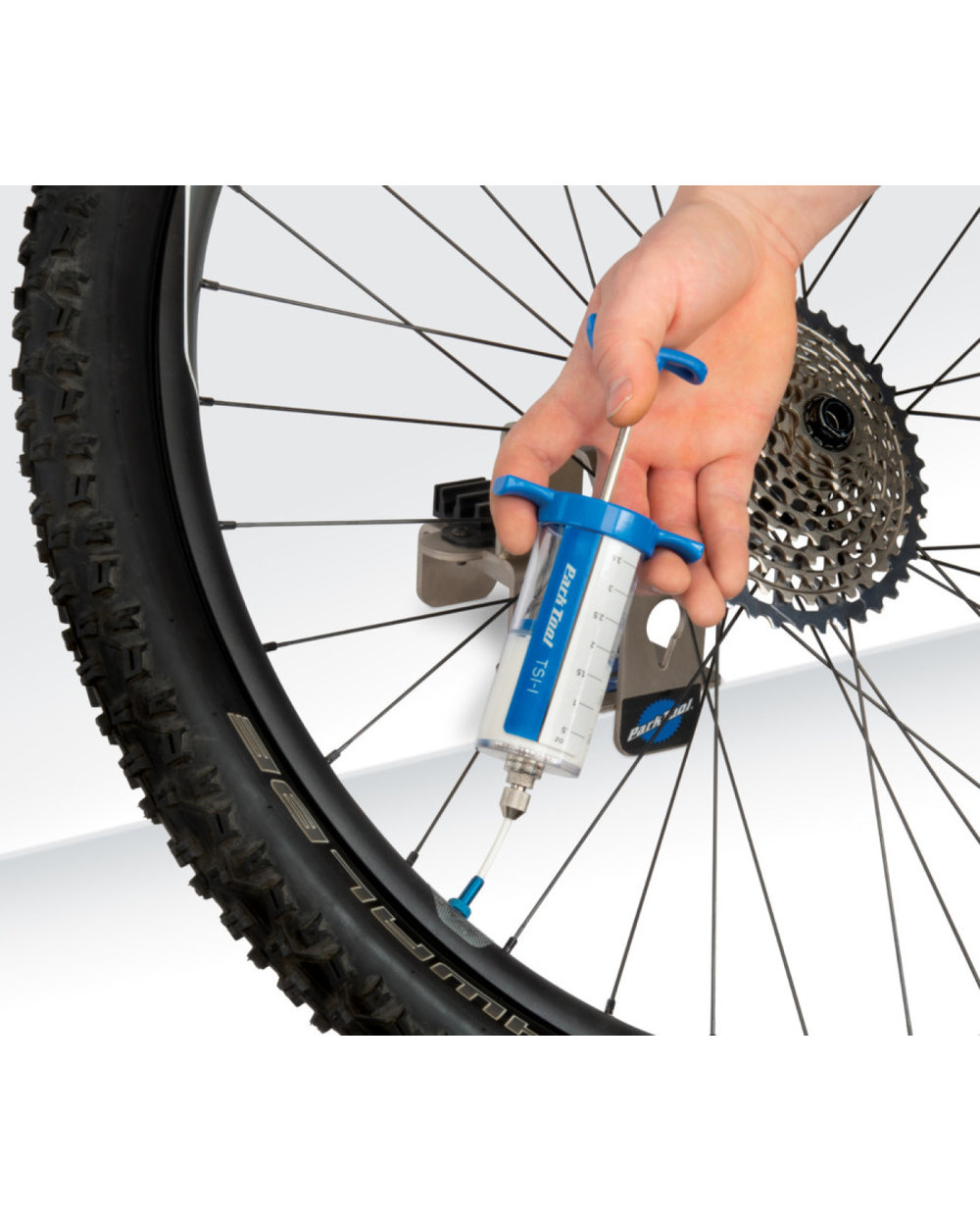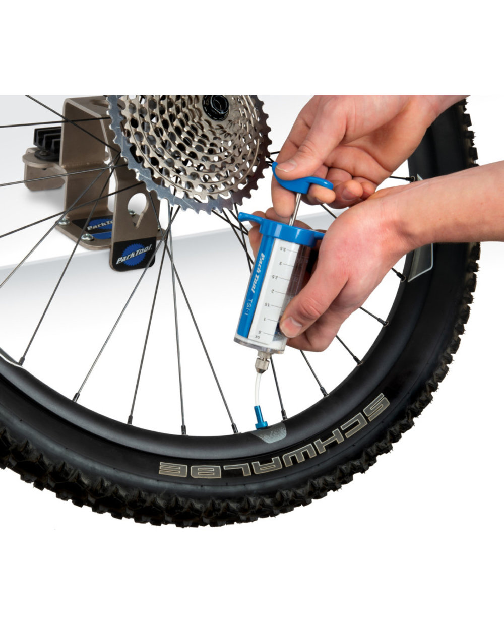 NOTE: some tubeless valves have a smaller bore than the TSI-1 tube. In these cases, the stem must be removed from the rim to remove the sealing material from the casing.