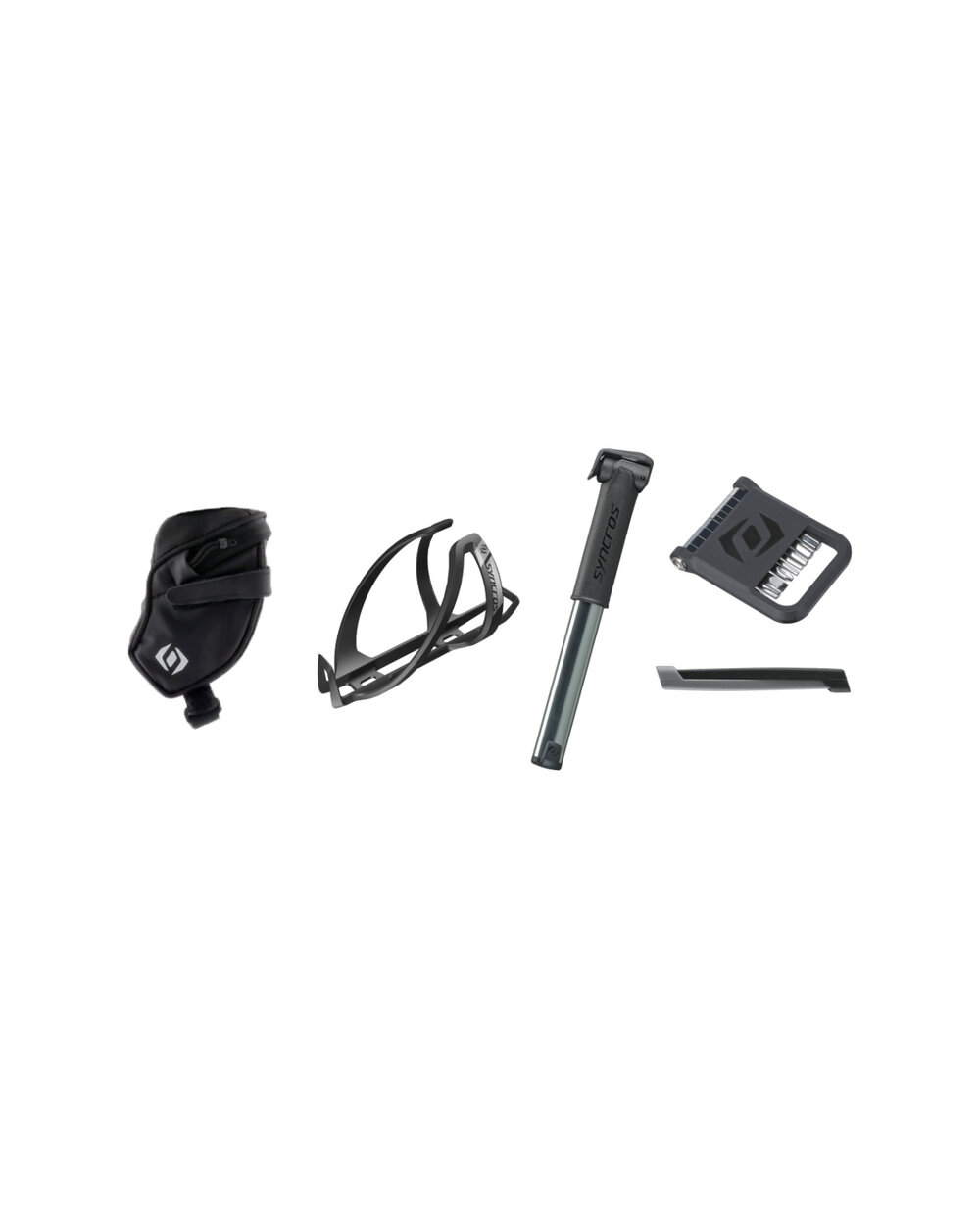 The basic road kit includes a small pannier, a set of pegs, a HP micro-pump and a black-and-white composite bottle cage, so you'll always have everything you need for a ride.