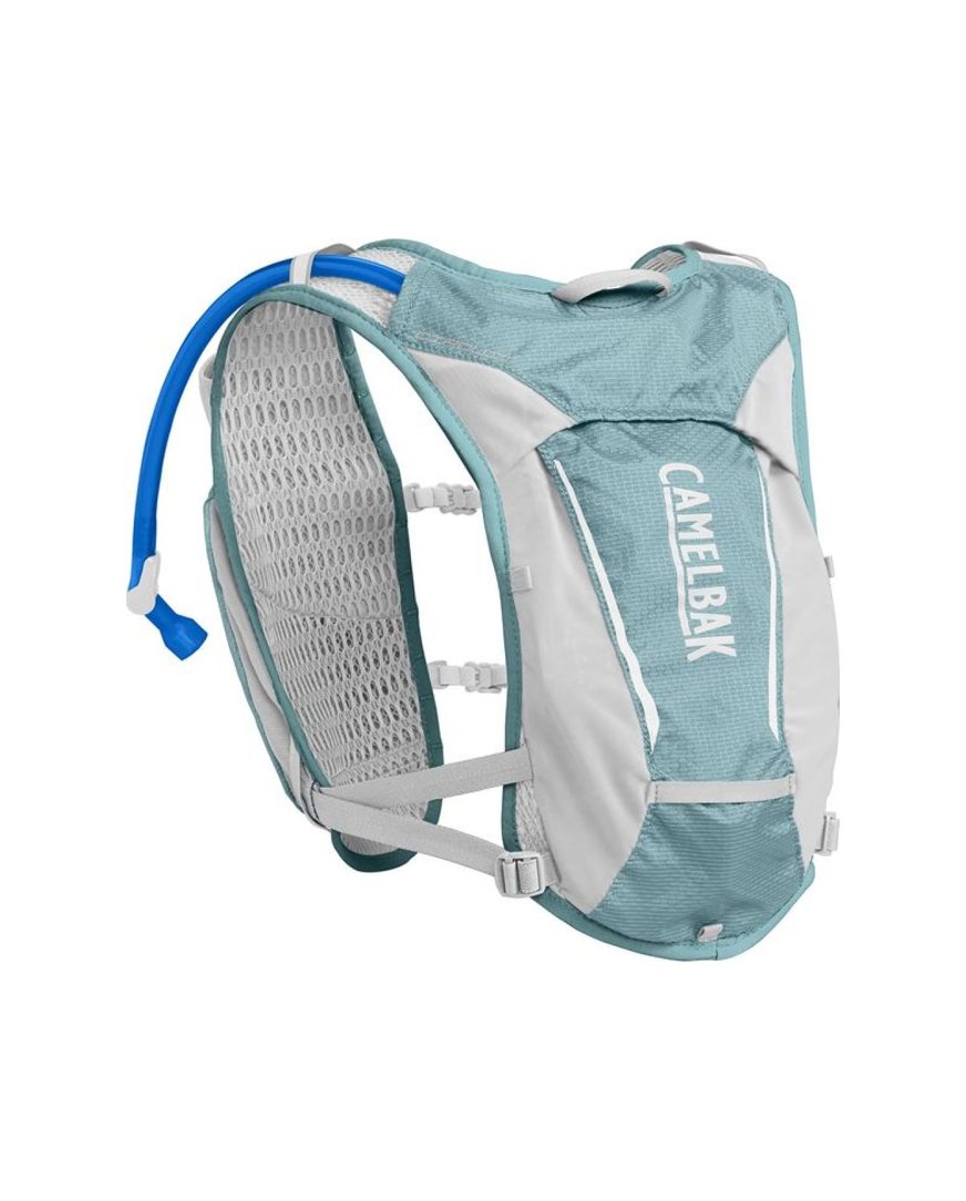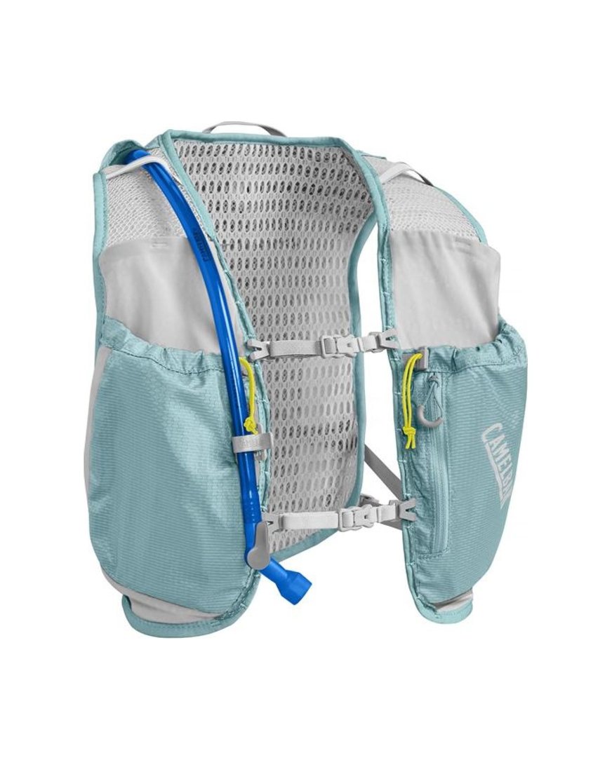 Running vest with 1.5l water reservoir and storage space. Several pockets hold your phone and other essentials including snacks. A height-adjustable double chest belt and reflective elements are also included.