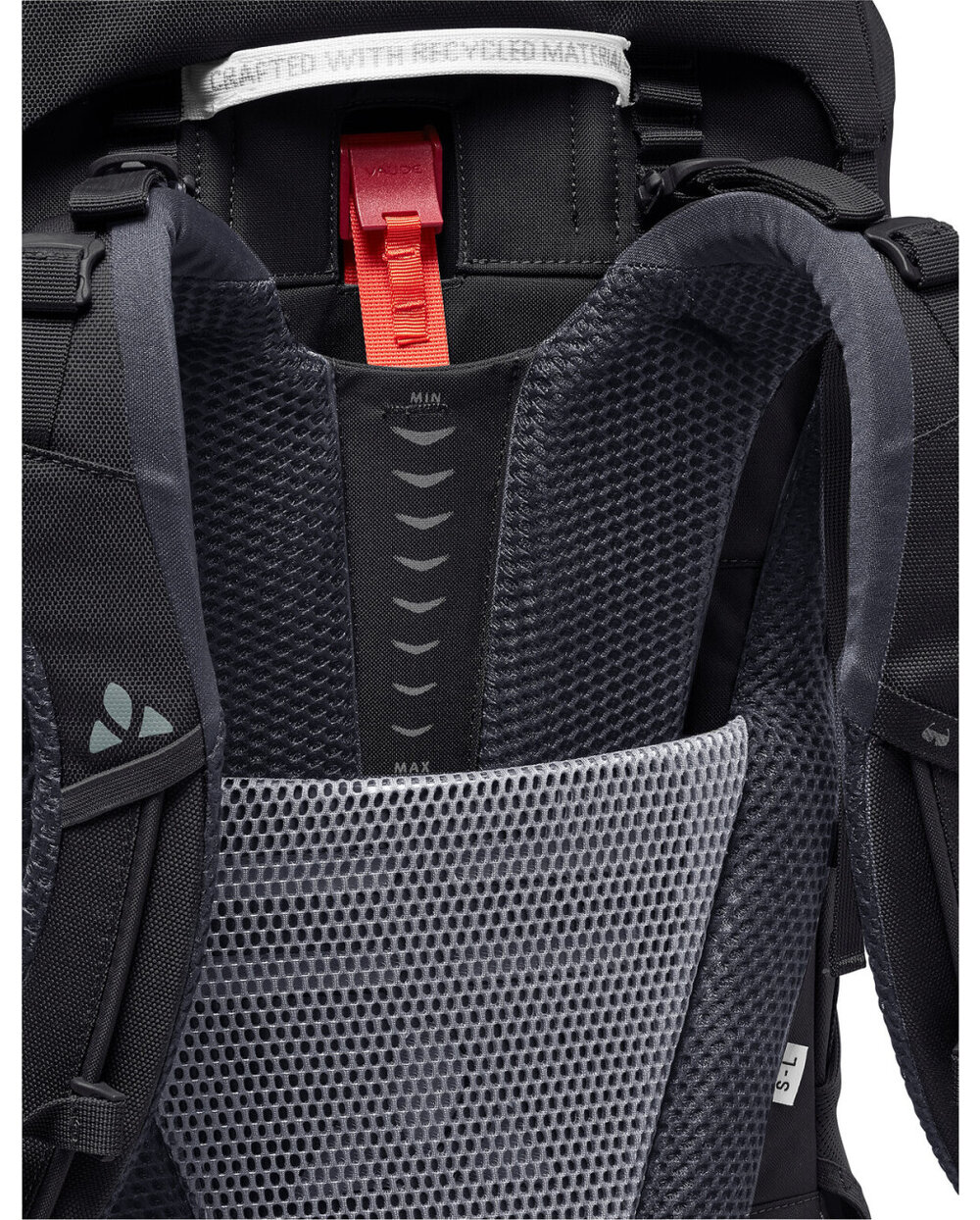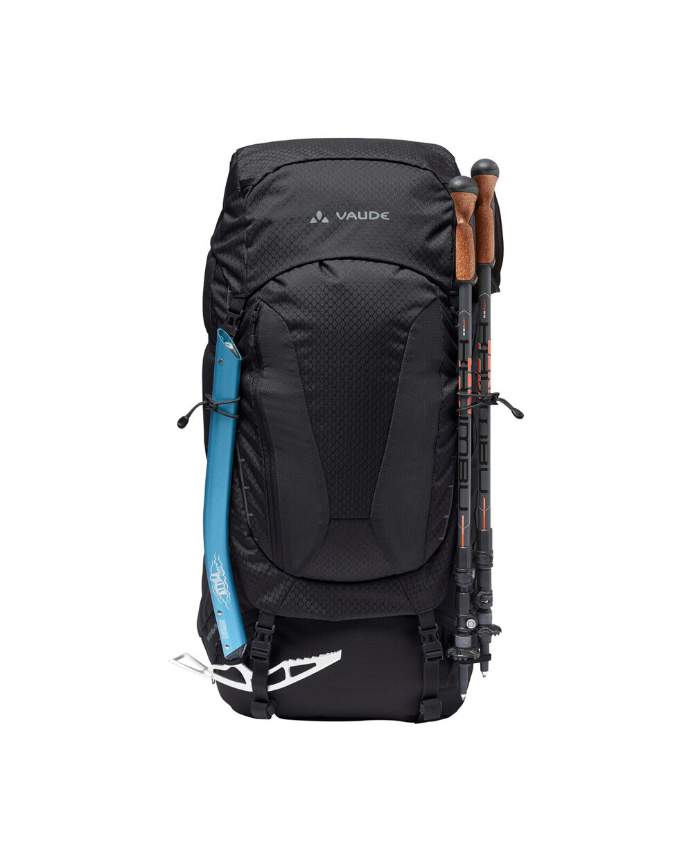 - 2 removable and variable compression straps, upper compression strap with versatile repair, 2 bars fastening points, fasteners for gear, fixing loops, chest strap, moisturizing system, information panel for high -altitude emergency inside the main space