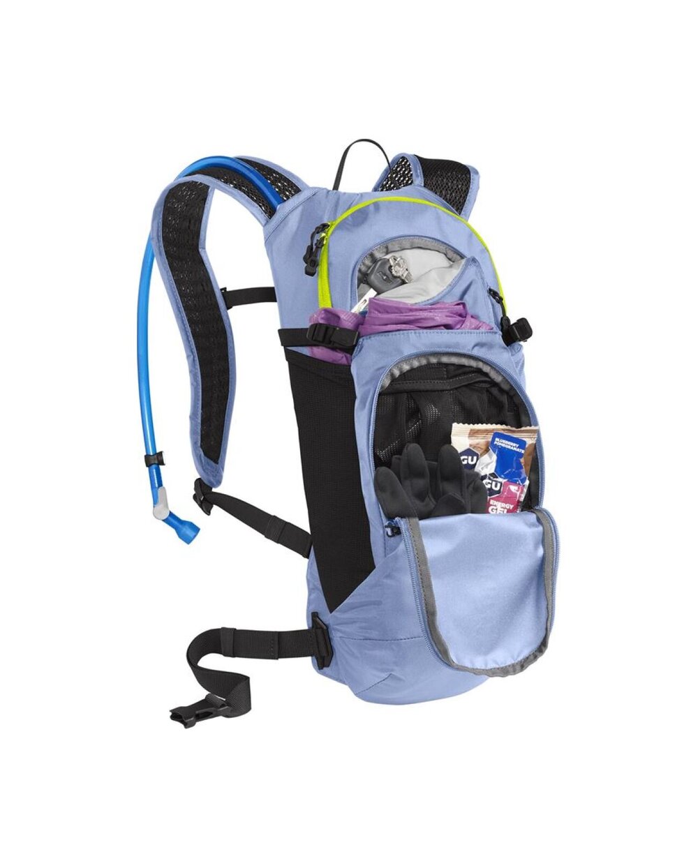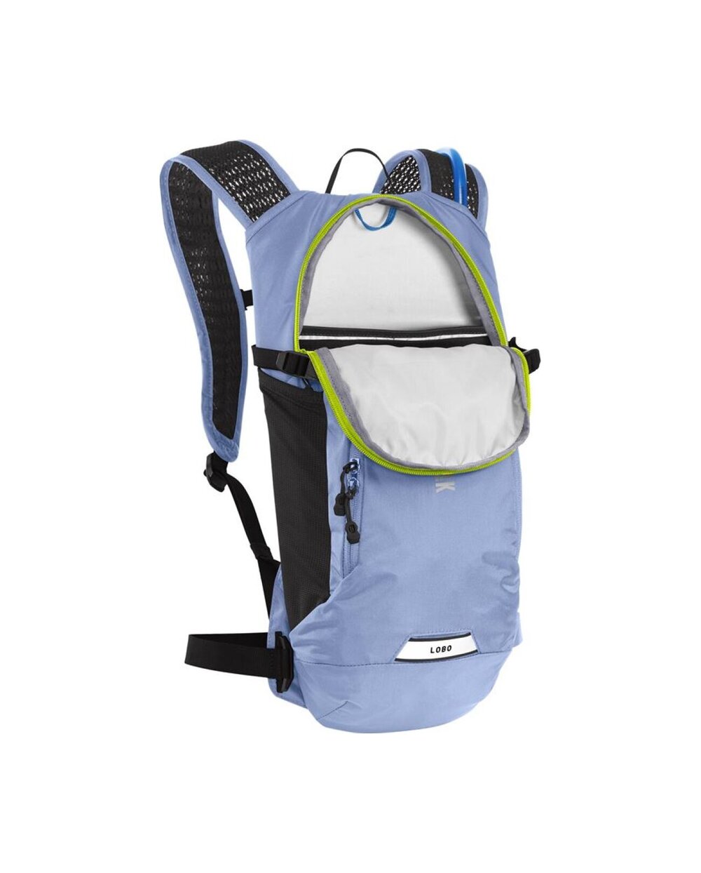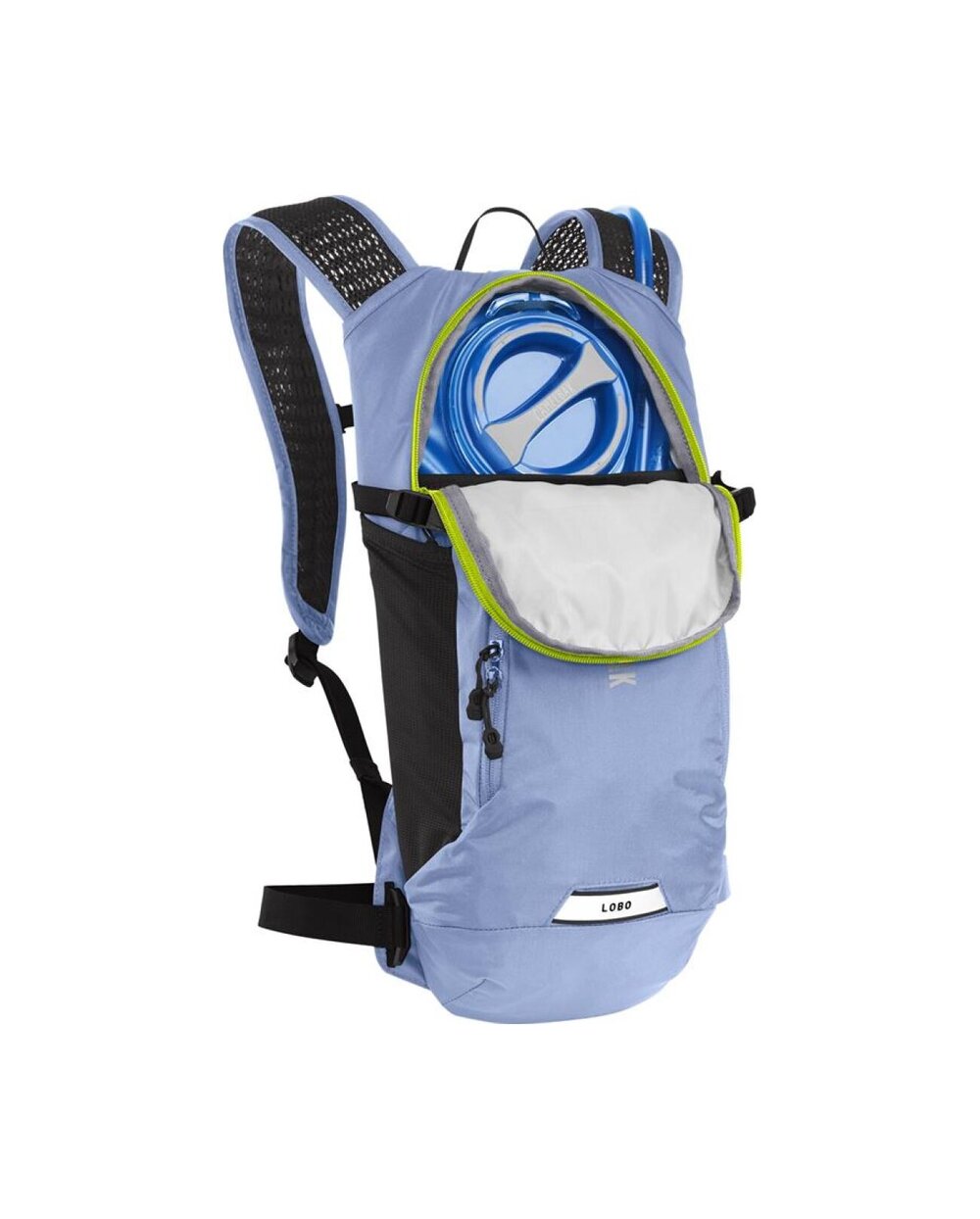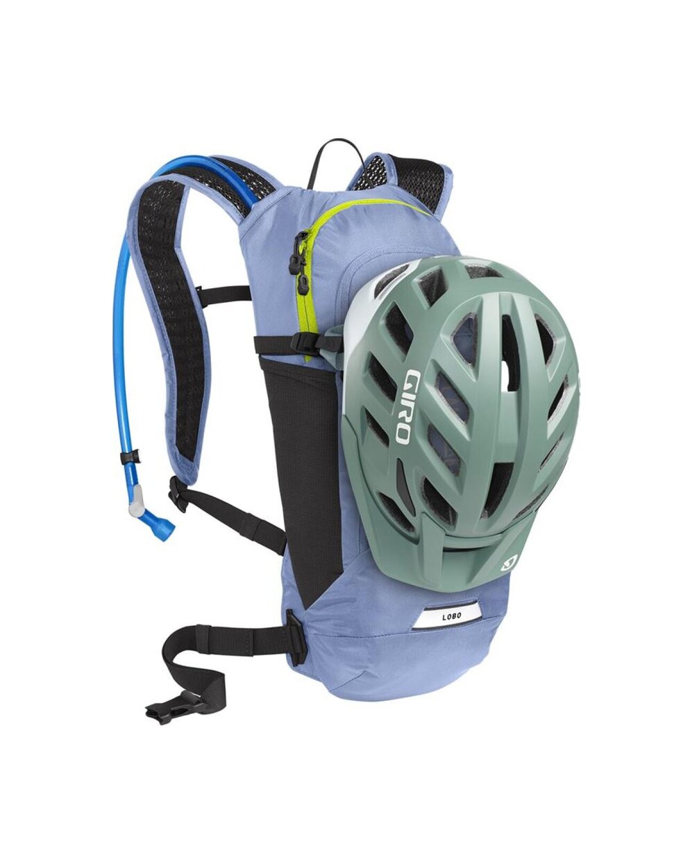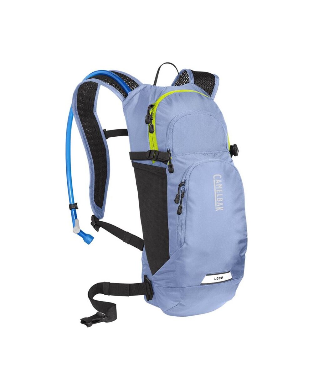 The Lobo is a sleek cycling pack with a narrow profile that can fit essentials and water for any ride. There's a pocket for small items, integrated tool organizer, chest and waist belt (removable), Magnetic Tube Trap, Helmet Carry, reflective elements, and blinker strap. The women's version is designed to respect the female torso, and the perfectly ventilated straps are shaped into an "S".
