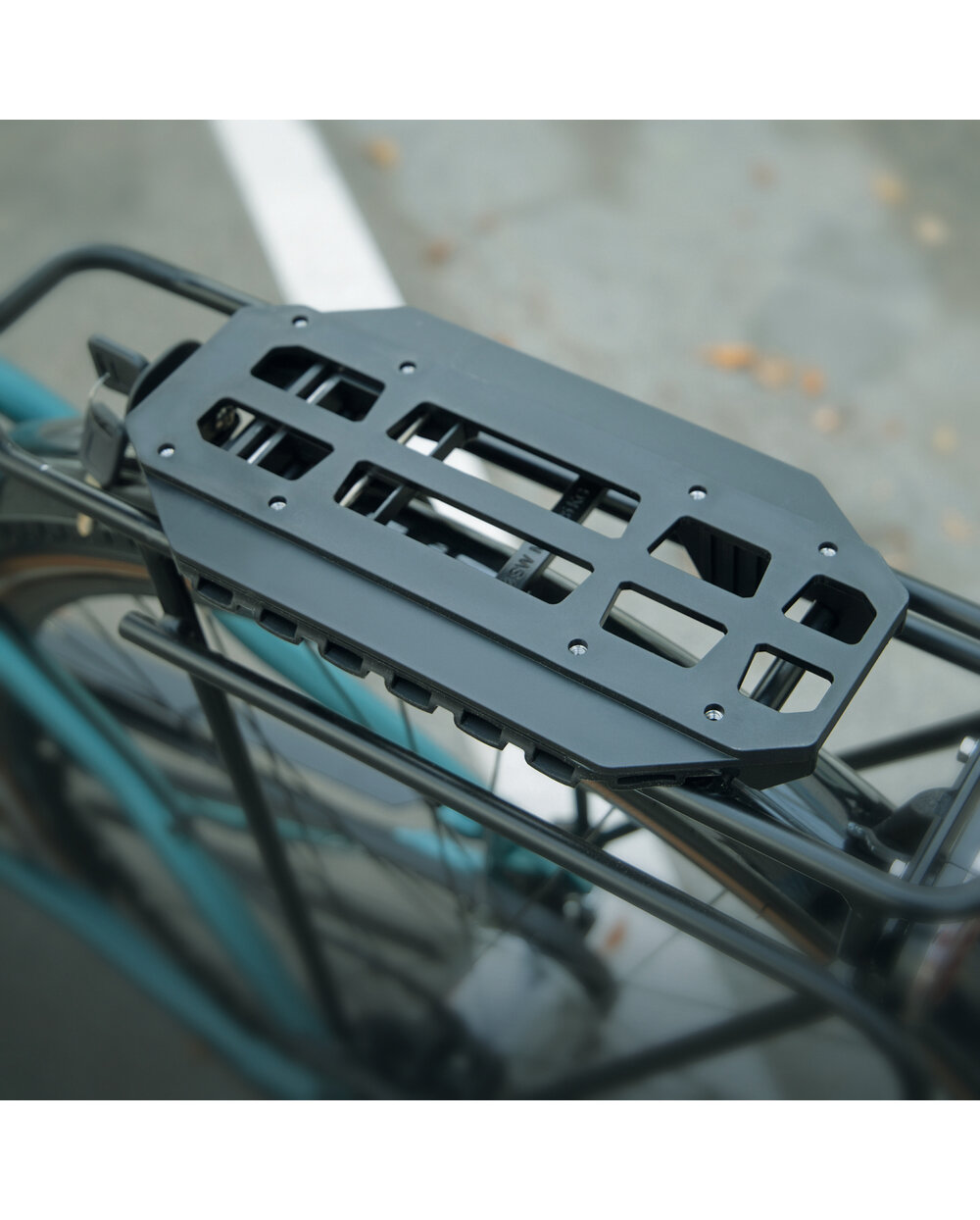 SKS MonkeyLoad attachment plate Many bike brands such as Pegasus, Bulls, Kettler, Hercules or KTM are already equipped with a MonkeyLoad luggage rack as standard. But even existing baskets and panniers without this technology can be easily adapted. The adapter plate can be attached to the underside of the bag with screws, making the bag compatible with the ML system.Dimensions: 260.5 × 135 × 40 mm Weight: approx. 330 g