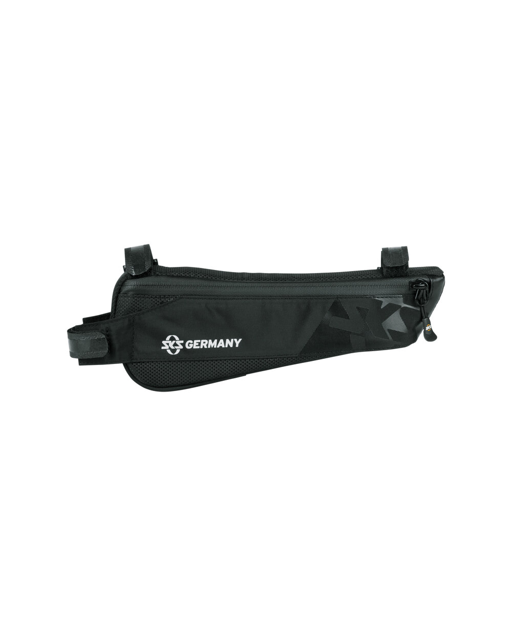 The lightweight SKS Racer Edge frame bag has a perfectly aerodynamic shape and a tough water-resistant surface. Despite its narrow profile, the frame pannier provides plenty of space for cycling tools, a spare inner tube and a mobile phone. The stylish design is complemented by reflective elements and ergonomic fastening. The frame bag is attached to the frame with durable rubberised Velcro fasteners. Colour: black Dimensions: 250 x 40 x 90 mm Capacity: 0.6 l Material: nylon