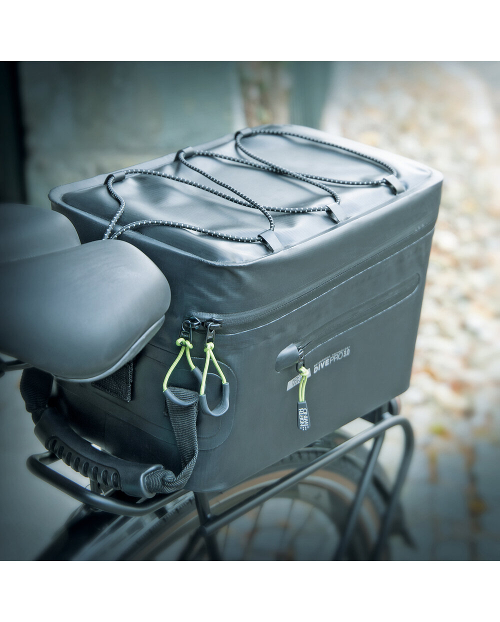 The bag is attached to the luggage carrier using the adapter plate, which is located on the bottom of the bag. The SMARTBAG DIVE snaps onto all luggage carriers with the MonkeyLoad-T system in seconds. The cushioning layer under the board ensures a stable attachment to the carrier's struts, and the bag can also be secured with a lock. To release, simply pull the locking mechanism forward. The bag can be comfortably carried using the side handle or carried over the shoulder thanks to the shoulder strap.With a storage space of 10 liters, the bag offers enough space for everything you need to take with you on a trip. The elastic packing net allows you to attach additional luggage. Phone, keys or wallet can be easily stored in the side zip compartment or the inner zip pocket.Features: