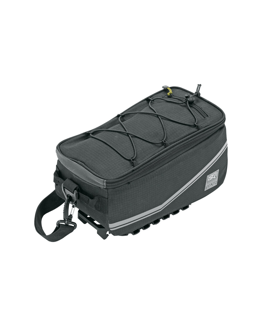 A bag with a spacious main compartment. A storage pocket made of elastic mesh allows you to carry additional luggage. The raincoat keeps the bag and its contents dry, while the reflective elements on the water-repellent nylon fabric ensure visibility even in the dark.Secure attachment with the MonkeyLoad adapter plate The bag is equipped with an adapter plate located on the underside. The PURE SMARTBAG snaps firmly onto all luggage carriers with the MonkeyLoad-T system within seconds. The cushioning layer under the board guarantees a stable fit and the bag can also be locked. The mechanism is released by simply pulling it forward. You can carry the bag by the side handles or use it as a shoulder bag thanks to the shoulder strap.Features: • Compatible with all MonkeyLoad carrier systems • Pre-assembled MonkeyLoad adapter plate with lock • Made of water-repellent nylon with reflective print • Elastic mesh storage pocket • Detachable shoulder strap • Integrated raincoat