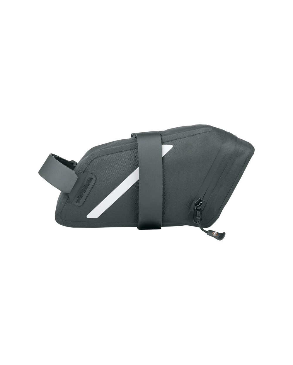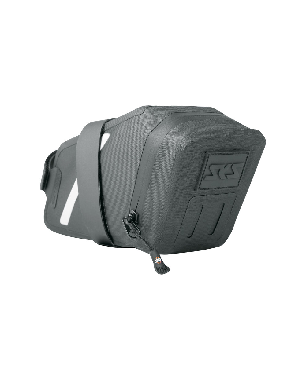 Basic equipment and necessity for cyclists on mountain and gravel bikes. Thanks to the fully welded design and durable outer material, the bike bag is very robust and durable. The zipper with the practical Easyzip function is welded to protect the equipment from moisture and dirt. The reinforced back of the bag allows for easy opening of the saddle bag.With reflective elementsTwo inner pockets made of durable mesh will safely store keys or money. The SKS saddle bag is equipped with anti-slip Velcro fasteners, which ensure secure attachment under the bicycle saddle. These zippers can be individually shortened or replaced. Reflective elements and a rear light holder improve visibility even when driving in the dark or at night.- Welded outer material resistant to splashing water