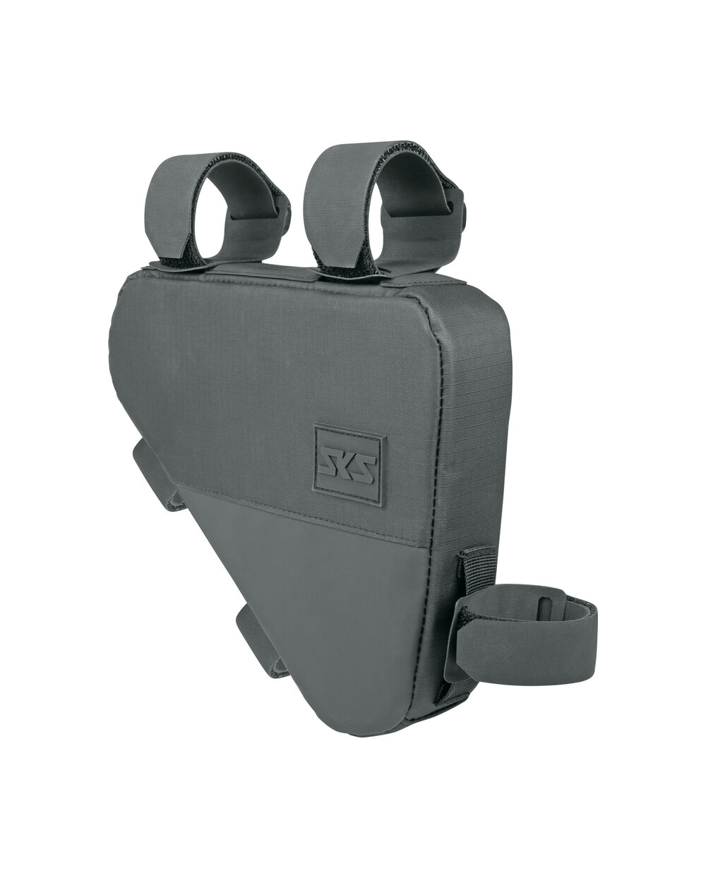 Everything under control! Whether it's a muesli bar, a spare tube, a windbreaker, sleeves or a pump - the URBAN FRAME BAG easily transports everything you need on a cycling trip. Water-repellent fabric protects against rain and extra reinforcement on the bottom provides stability.Secure fastening with strong Velcro fastenersEasyzip zippers allow quick access to contents. Three robust and strong Velcro fasteners with frame protection ensure secure fastening in the frame triangle. Lacquer-friendly anti-slip Velcro fasteners can be shortened or replaced.- Durable outer material - Water-repellent - Shortenable Velcro fastener with frame protection - Easyzip zipper Material: Polyester Color: black Weight: 185 g Volume: 1400 ml Dimensions: 240 x 50 x 200 mm