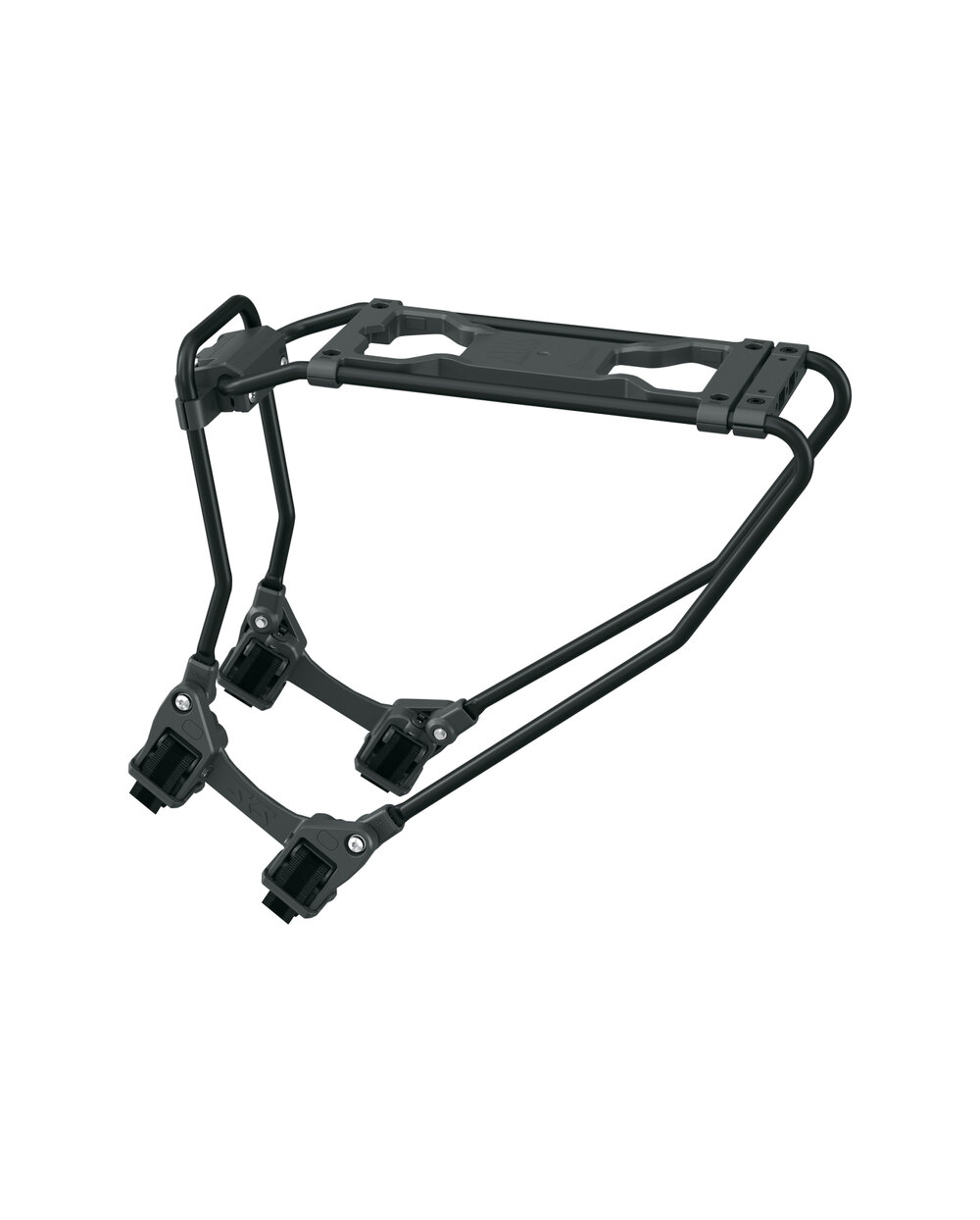 Universal luggage carrier for any bicycle. The INFINITY UNIVERSAL aluminum luggage rack offers unlimited customization options for any bike. The adjustable mechanism allows the stand to be adapted to any geometry. After loosening the screws, the inclination and height of the mounting system can be adjusted individually. The quick-release system with durable nylon straps ensures easy mounting on the saddle part. With a click system for attaching luggage to a bicycle. Another clever element is the adapter plate "MIK", which is part of the carrier. The click system makes it very easy to attach the luggage to the bike using the MIK system, which can be simply clicked onto the carrier. INFINITY UNIVERSAL safely and reliably transports up to 12 kg of luggage (it is not suitable for transporting child seats). The optional INFINITY UNIVERSAL MUDGUARD can also be mounted under the luggage rack in a few simple steps.