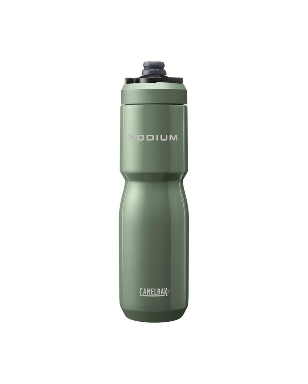 An insulated bottle designed to keep you cool or warm all day long. Designed for those epic all-day summer rides where cold water is absolutely essential. And also for winter mileage, when you will again appreciate warm tea. Modern minimalist design, vacuum-insulated stainless steel construction and elegant surface go beyond mere functionality and leave a strong aesthetic impression. Thanks to the innovative design, there is no need to squeeze the bottle. Tilt it and the water flows as you need it. The bright blue tube under the Podium® cap is the Vent Tube. This is the secret of the high water flow when you turn the bottle upside down to drink. The vent tube allows air to enter, which replaces the water that flows smoothly out of the bottle. WARNING: The bottle is not intended for use with boiling or extremely hot liquid! CamelBak bottle caps are compatible with each other. Podium Vacuum Insulated bottles can be transformed into a stylish water bottle for everyday use by adding a Chute Mag or Carry Cap. With the Hot Cap lid, you can turn it into a mug for coffee or tea. PROPERTIES double wall vacuum insulated to keep drinks cold for up to 18 hours ultralight design 18/8 stainless steel - tough as nails, but definitely tastes better... no need to squeeze - just tilt and the water flows in sufficient quantity lock-out against accidental spillage BPA free easy to wash after riding The construction is durable enough to withstand the scratches that are inevitable when in contact with the basket. Both Podium Steel and Titanium will likely eventually show some wear that does not affect the function of the bottle. VOLUME 650 ml DIMENSIONS 27.2 x 7.5 x 7.5 cm WEIGHT 354 g