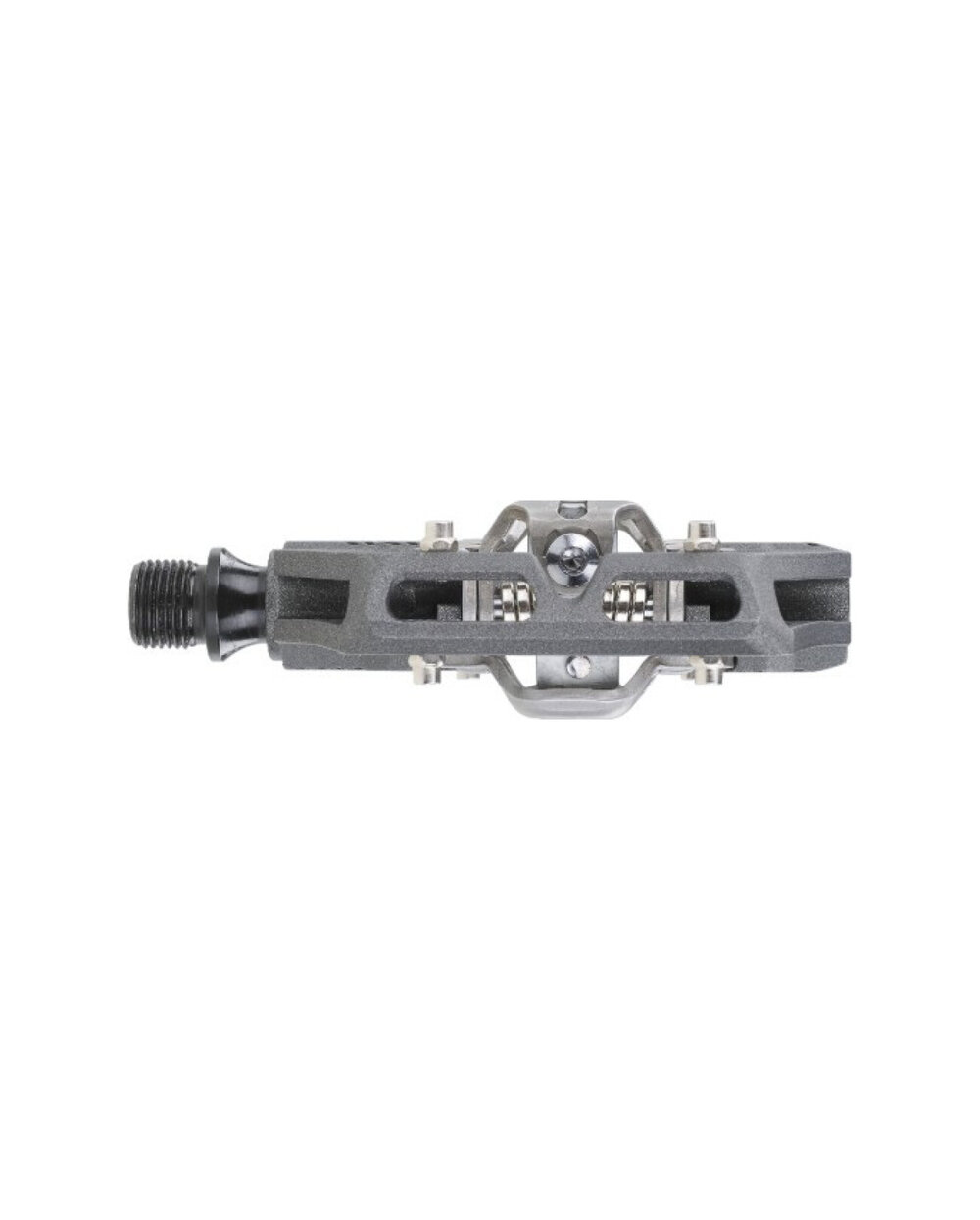 CNC cultivated, ceramically coated magnesium pedal (ceramag) maintains a low weight of only 419 grams per pair - approximately 210 grams per pedal. It uses ultra-robust forged and CNC cultivated chrome-molybden steel axis. The fully serviceable triple bearings system consists of a self -luminous LSL case, a needle bearing and an industrial roller bearing. Four -fold seals maintain the internal parts dry under any conditions. The double -sided clicking system is compatible with the classic SPD football boots. The retention system has an adjustable spring voltage for fine -tuning and release and offers 5 degrees of free movement. The large platform around the clicking system provides fixed support for optimized control and power transfer. The pedal is tested and certified according to the EFBE EPAC EPAC Gravity Tri-Test® (Category 5). Ceramag - ceramically coated magnesium alloy Very lightweight structural metal High strength 100% recyclable Ceramic coating for maximum wear resistance and corrosion Large platform provides fixed boot support for optimized control and power transfer