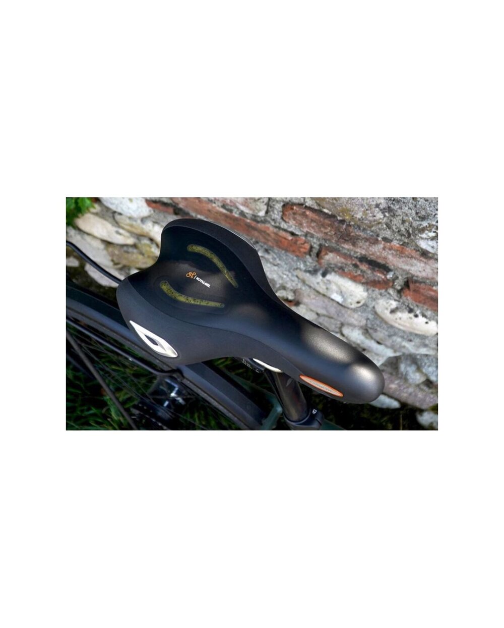 Our most iconic saddles now with a refreshed look and recycled interior. The Lookin series of saddles is the first to introduce the new Stracciatella technology: this innovative filling material represents a significant step forward on the path towards sustainable production - discarded saddles are crushed into fine granules and used to fill a new saddle. This process reduces waste and underlines our commitment to the environment. The Lookin and Lookin EVO saddles are the first saddles made with this technology. Of course, we didn't forget other important aspects during production - comfort and design. The saddles are equipped with Royalgel, which adapts perfectly to your body. The surface of the saddle is partially transparent, so you can watch how the Royalgel layer adapts to the new Stracciatella pieces. Silver protections on the sides against penetration increase the durability of the saddle. Athletic saddles are for riders who are used to cycling at a faster pace and keeping their back at a lower angle (around 45°). The riding position is a decisive factor in choosing the optimal saddle. Depending on your riding style, the way your sit bones touch the saddle varies significantly, which in turn affects the level of comfort. Selle Royal saddles are ergonomically designed to fit all widths of sit bones and meet the anatomical needs of both men and women, guaranteeing pressure relief in the most sensitive areas. Choose the right riding position from 45° (Athletic), 60° (Moderate) or 90° (Relaxed) to enjoy a pain-free ride. Stracciatella: innovative padding technology that recycles old or discarded saddles. These saddles are crushed into fine granules and used as filler for new saddles. Stracciatella, ground into granules and injected into the new foam, reduces the amount of waste. You can see this new filling through the windows under the Royalgel, and they look just like the legendary Italian ice cream! Just like the famous Italian ice cream, you can enjoy Stracciatella with every ride! Royal Gel: Due to its exceptional construction, Royal Gel provides the highest level of comfort of any type of padding. This technology skillfully distributes impacts and the rider's pressure over the largest possible area of ​​the saddle and ensures great comfort even on the longest rides. Royal Vacuum: Enjoy your ride with a waterproof saddle. This patented Selle Royal technology allows us to produce a saddle that is 100% sealed and waterproof, even when riding in heavy rain. Side protection: Say NO to torn edges of the saddle and rest your bike really anywhere on anything: protection on the sides of the saddle increases its resistance to abrasion or tearing. Integrated Clip System: An integrated clip on the back of the saddle allows you to attach a saddlebag or other accessories. Width: 160 mm Length: 279 mm Weight: 440 g ICS: yes