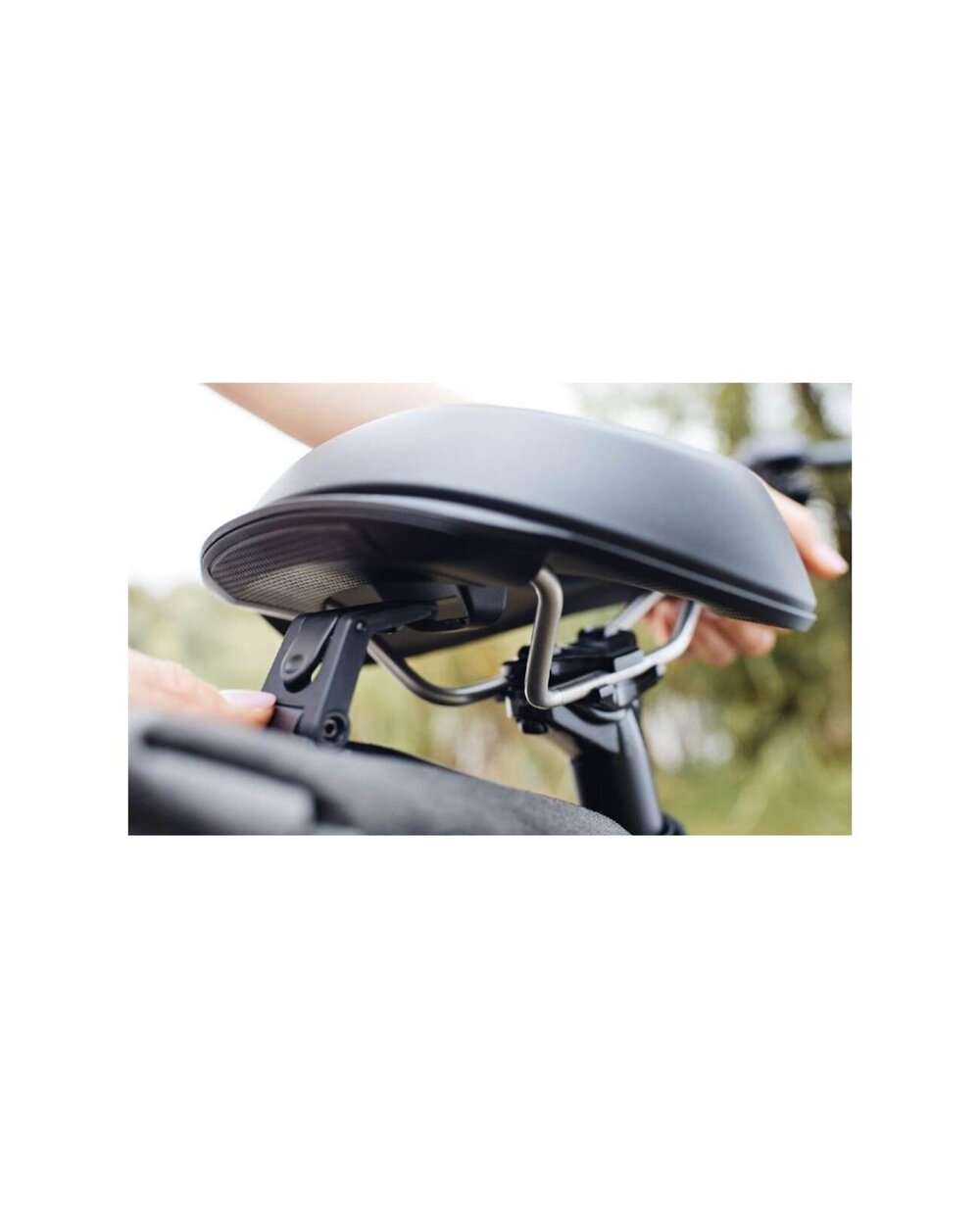The On Open saddle is specially designed for e-bikes to ensure the best possible comfort and handling: its flexible sidewalls make pedaling easier, while the raised back of the saddle helps you find the right position on the saddle instantly. The padding is made of our Royalgel, which absorbs shocks 40% better compared to classic padding. In addition, the central cutout relieves sensitive tissue and improves ventilation. Relaxed is the ideal version of the saddle for those who prefer to sit upright and ride calmly (back angle approx. 90°). The riding position is a decisive factor in choosing the optimal saddle. Depending on your riding style, the way your sit bones touch the saddle varies significantly, which in turn affects the level of comfort. Selle Royal saddles are ergonomically designed to fit all widths of sit bones and meet the anatomical needs of both men and women, guaranteeing pressure relief in the most sensitive areas. Choose the right riding position from 45° (Athletic), 60° (Moderate) or 90° (Relaxed) to enjoy a pain-free ride. Royal Gel: Due to its exceptional construction, Royal Gel provides the highest level of comfort of any type of padding. This technology skillfully distributes impacts and the rider's pressure over the largest possible area of ​​the saddle and ensures great comfort even on the longest rides. Royal Vacuum: Enjoy your ride with a waterproof saddle. This patented Selle Royal technology allows us to produce a saddle that is 100% sealed and highly waterproof, even when riding in heavy rain. Ergonomic Hole: Designed to reduce pressure on the perineal area, this ergonomic central hole is the ideal saddle for the most sensitive riders. No more pain, just ride! Integrated Clip System: An integrated clip on the back of the saddle allows you to attach a saddlebag or other accessories. E-Fit Design: An innovative wave-shaped design that helps you instantly find the right position on your e-bike. The raised back of the saddle prevents you from sliding backwards and ensures maximum comfort for your back, while the uniquely flexible sides of the saddle add stability and ease of pedaling. E-Grip: The integrated soft handle makes handling the bike easier. DIMENSIONS 255 x 220 mm WEIGHT 629 g