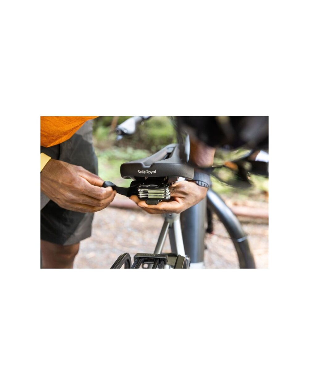 Multi Tool: Always be prepared for the unexpected. This multi-tool attaches to the back of your Selle Royal saddle equipped with the Integrated Clip System (ICS) to keep it close at hand for quick adjustments and repairs on your travels. The compact 9-function tool is protected by an anti-shock rubber case for years of reliable use.