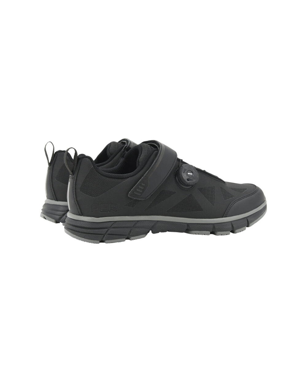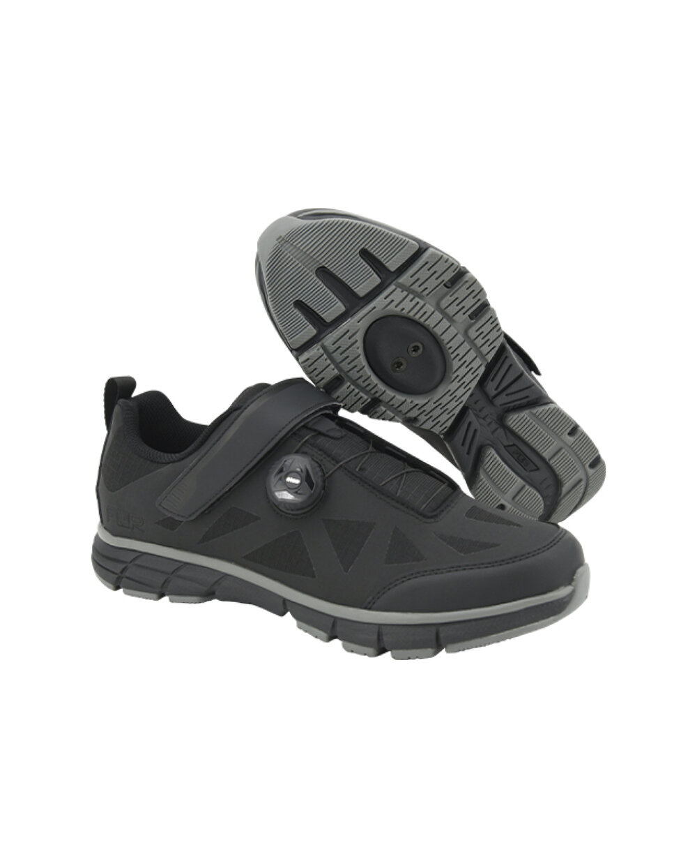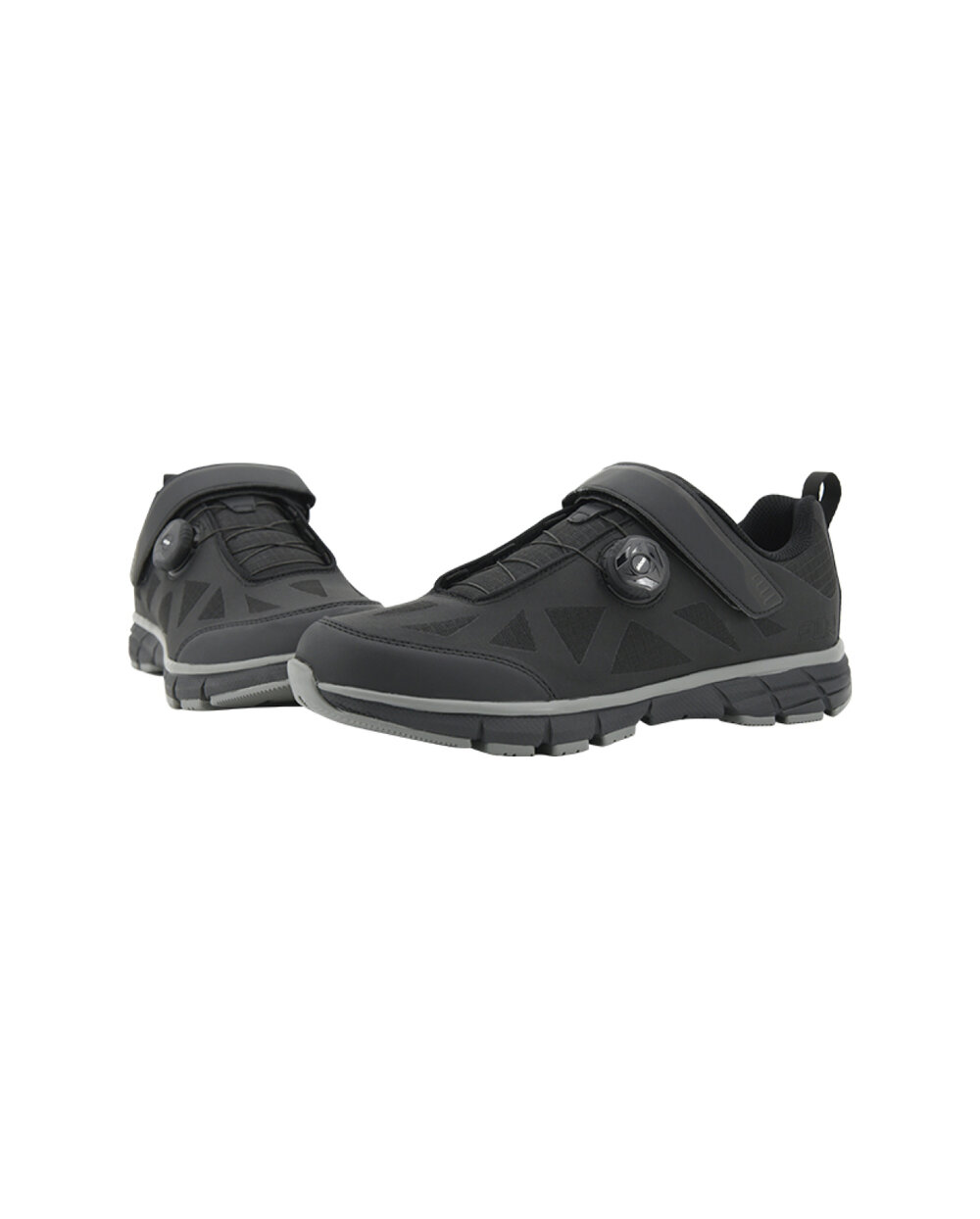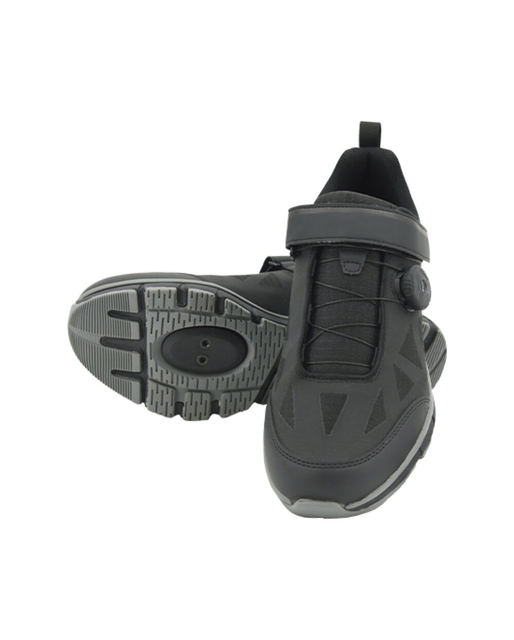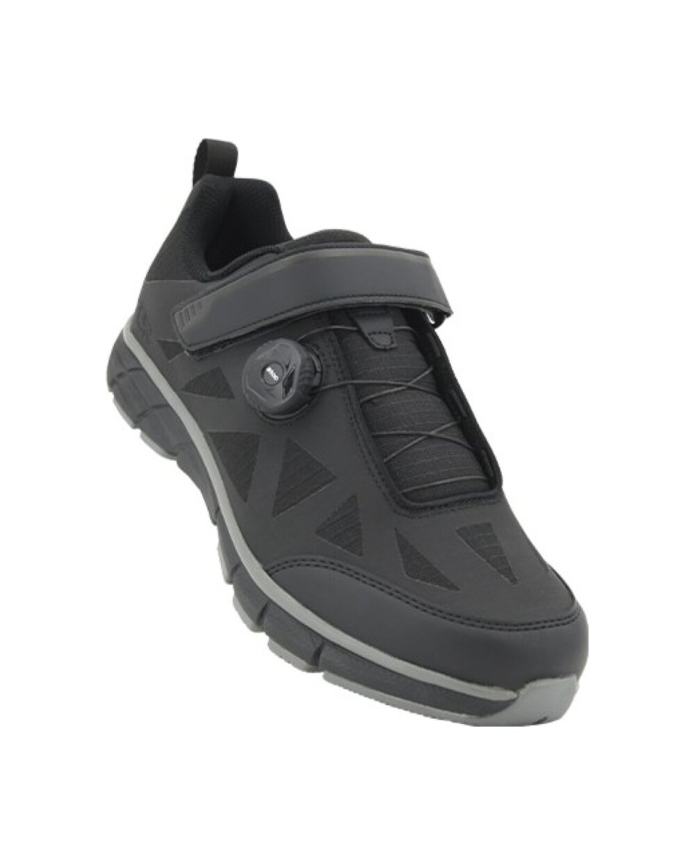 These shoes have a high-quality synthetic upper, mesh windows for breathability and ventilation, and extra protection with a reinforced toe. The lacing system uses a single dial and a large Velcro strap for a secure and precise fit at every point of the foot. The Active sole offers the perfect balance of weight and stability. A reinforced nylon inner plate increases pedaling efficiency, while the EVA midsole and rubber tread increase comfort when walking out of the saddle. Featuring a hidden cleat design and rubber treads to add traction and grip needed when transitioning off the bike.• Reinforced PU heel and toe increase overall protection • Lightweight construction with large softshell mesh inserts • Soft fabric eyelets minimize pressure • A41 dial with soft lace for precise fit at every point of the foot