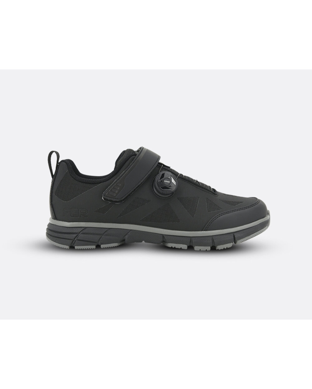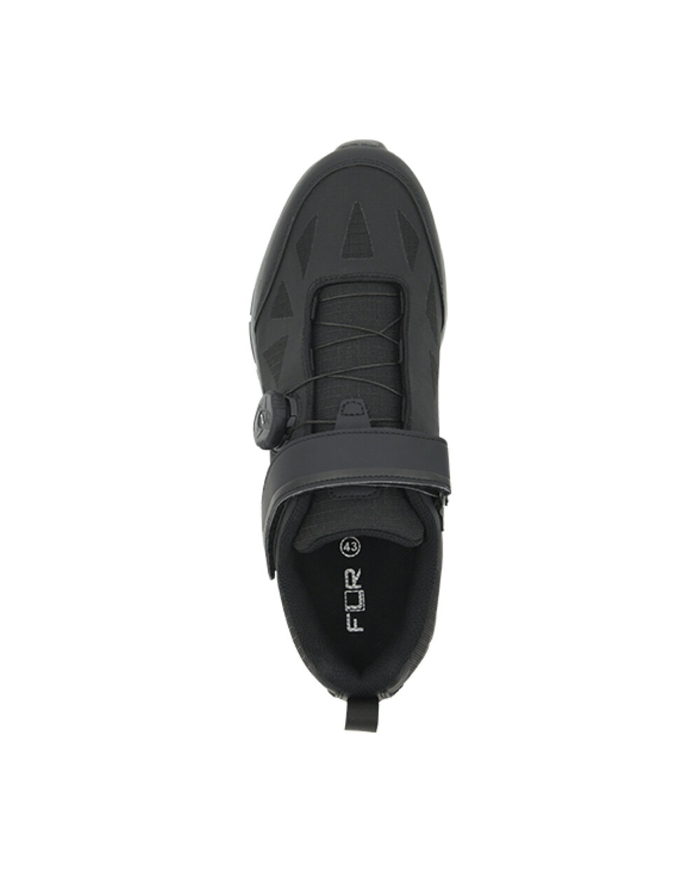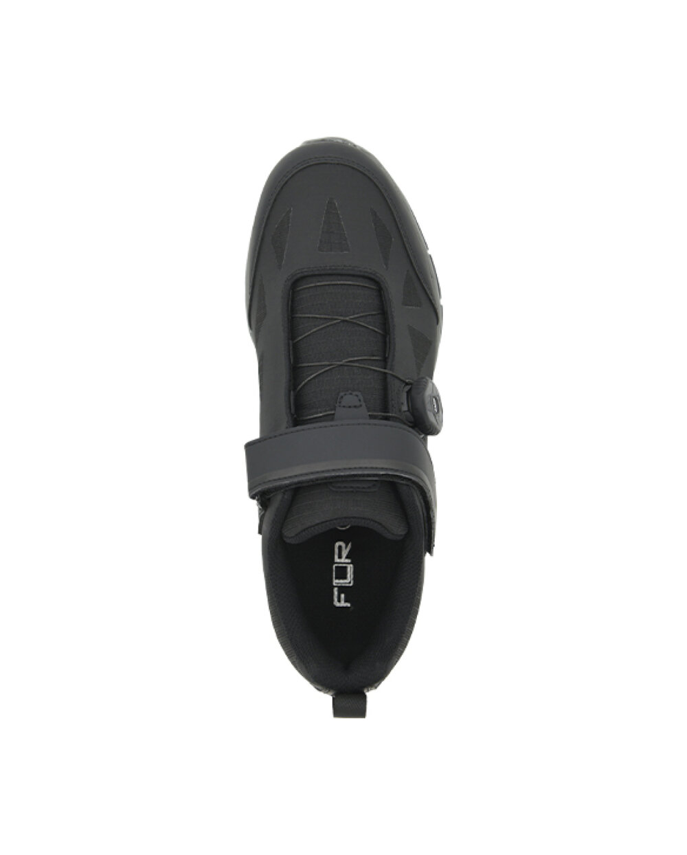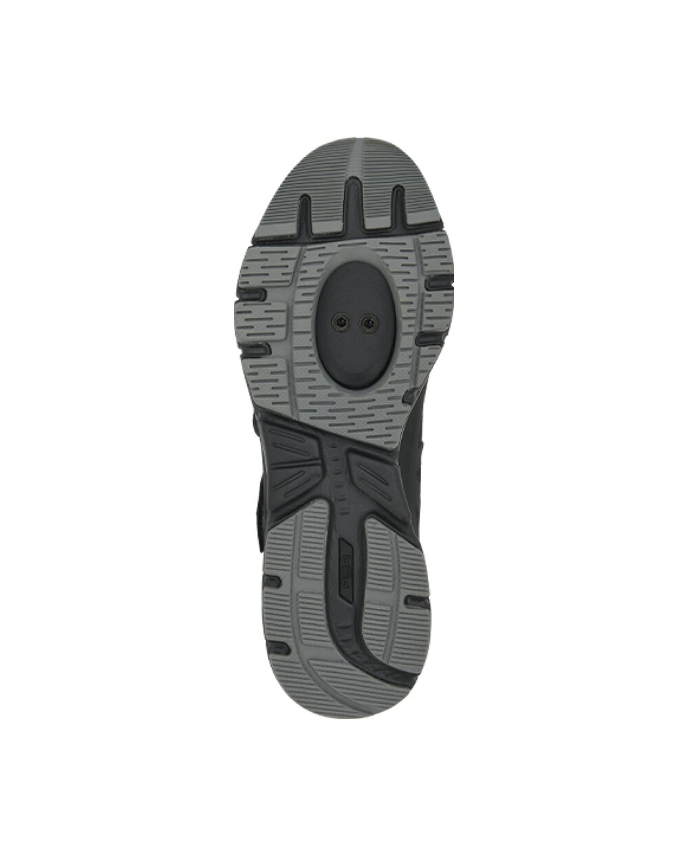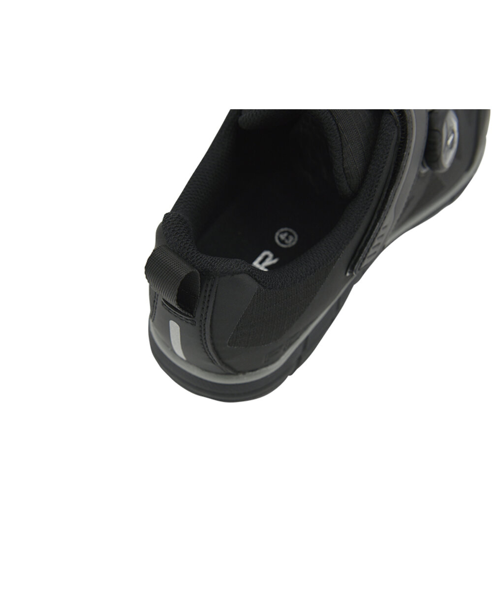 These shoes have a high-quality synthetic upper, mesh windows for breathability and ventilation, and extra protection with a reinforced toe. The lacing system uses a single dial and a large Velcro strap for a secure and precise fit at every point of the foot. The Active sole offers the perfect balance of weight and stability. A reinforced nylon inner plate increases pedaling efficiency, while the EVA midsole and rubber tread increase comfort when walking out of the saddle. Featuring a hidden cleat design and rubber treads to add traction and grip needed when transitioning off the bike.• Reinforced PU heel and toe increase overall protection • Lightweight construction with large softshell mesh inserts • Soft fabric eyelets minimize pressure • A41 dial with soft lace for precise fit at every point of the foot
