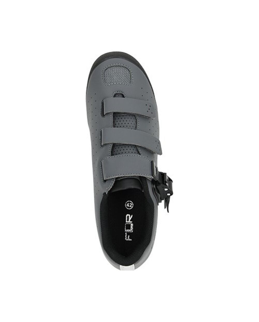 The F-67 cycling shoes are designed with a professional shape and cut for maximum performance and comfort during races. The R250 Road sole uses new fiberglass components that increase stiffness and efficient power transmission. The shoes are made of microfiber leather, which is a high-quality and durable material that ensures long life and comfort.F-67 are equipped with a triple strap system that allows precise and secure fastening of the foot. The molded EVA insole is breathable and removable, which contributes to increased comfort. The improved F-67 model offers a durable, breathable and comfortable synthetic upper with a reinforced toe that protects against rocks and other obstacles on the trail. Two asymmetric Velcro fasteners and one ratchet ensure a secure and precise fit.The shoes are equipped with an M250 sole that provides excellent power transfer and has a dual density for better grip without compromising durability. Removable toe spikes add traction in winter conditions or cyclocross. Excellent arch support ensures that the sole does not lose its shape over time, and a well-padded tongue helps to evenly distribute pressure on the foot and absorb vibrations from the terrain.