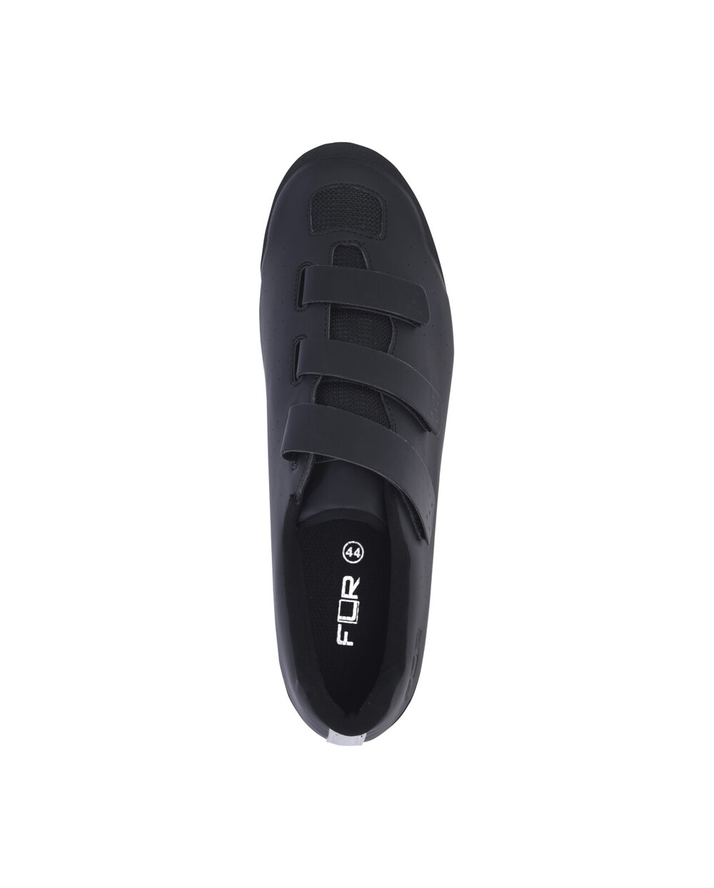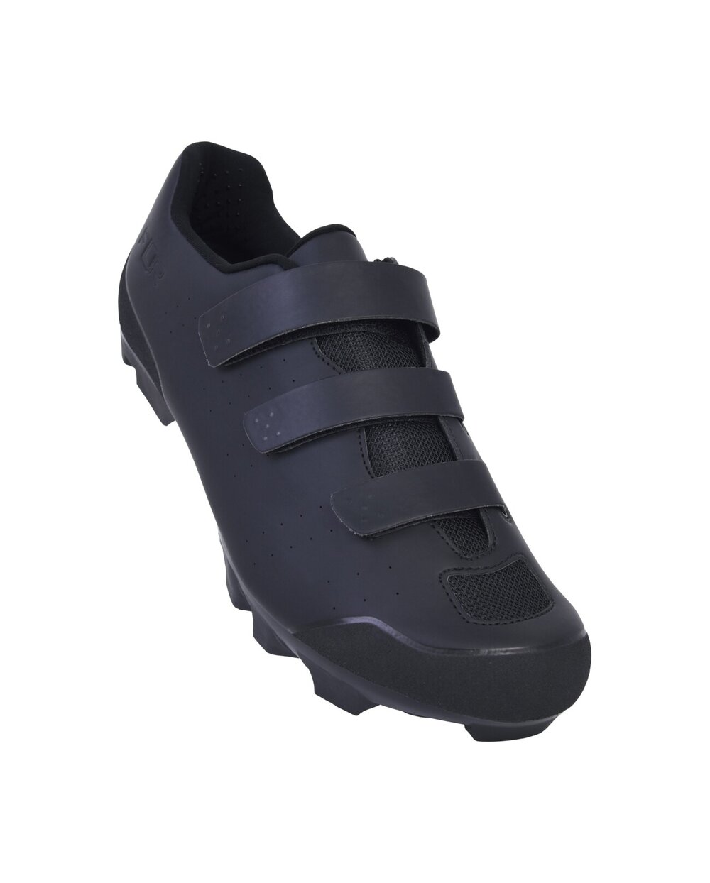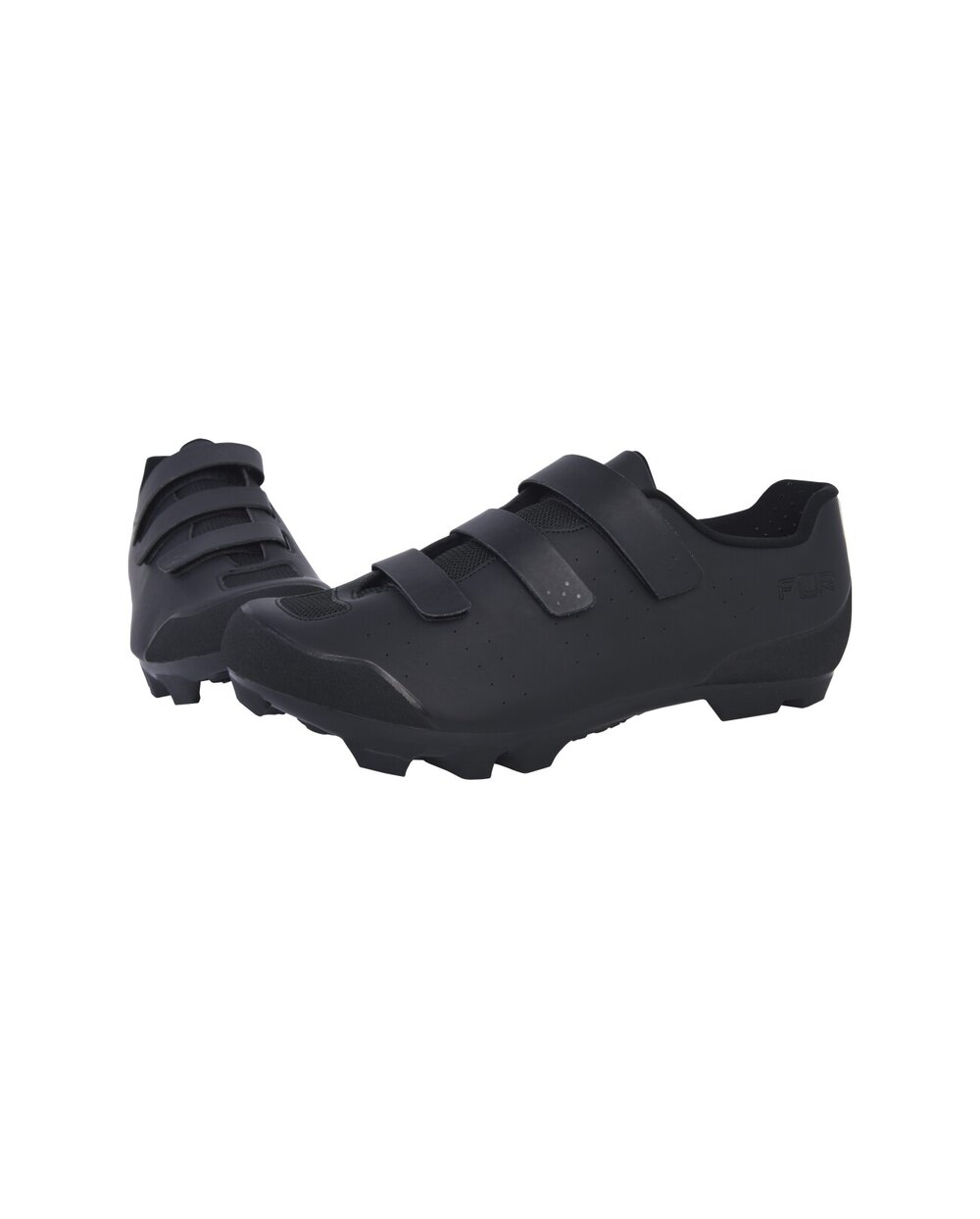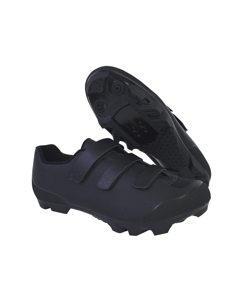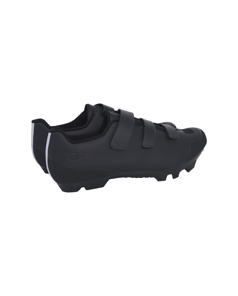 The FLR FX-1 MTB shoes are affordable cycling shoes for MTB and gravel bikes that offer high performance and comfort. The sneakers are made of synthetic material with six mesh panels that ensure excellent ventilation and keep the feet comfortable. Fastening is ensured by three low-profile Velcro fasteners, which allow precise and secure adjustment while riding.The FLR FX-1 sneakers have a nylon sole with a double density of lugs, which ensures better traction in the field. On the front part of the sole there are holes for fixing the tips for a better grip in winter conditions or during cyclocross. The inner insole is equipped with arch support to increase comfort and reduce leg fatigue during long rides. The padded tongue of the shoe is ergonomically shaped and breathable, quickly wicks away moisture and evenly distributes pressure on the foot.