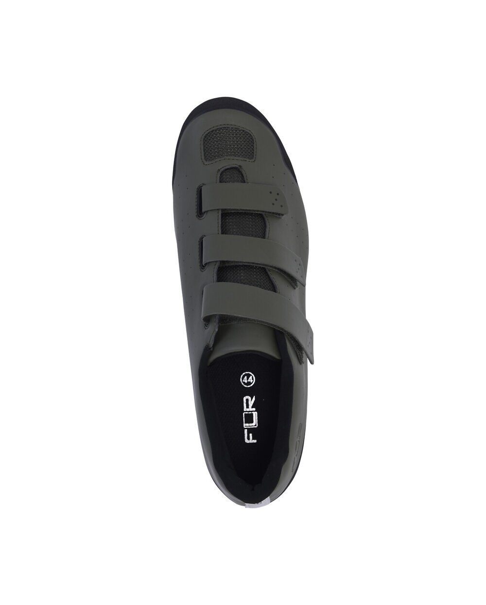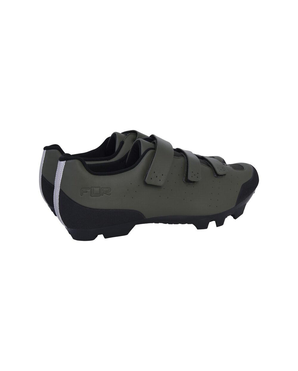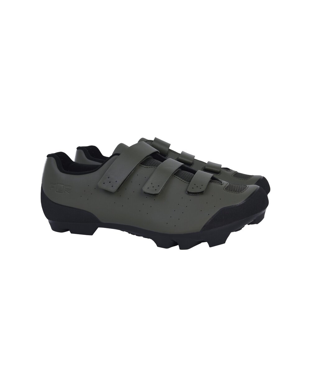 The FLR FX-1 MTB shoes are affordable cycling shoes for MTB and gravel bikes that offer high performance and comfort. The sneakers are made of synthetic material with six mesh panels that ensure excellent ventilation and keep the feet comfortable. Fastening is ensured by three low-profile Velcro fasteners, which allow precise and secure adjustment while riding.The FLR FX-1 sneakers have a nylon sole with a double density of lugs, which ensures better traction in the field. On the front part of the sole there are holes for fixing the tips for a better grip in winter conditions or during cyclocross. The inner insole is equipped with arch support to increase comfort and reduce leg fatigue during long rides. The padded tongue of the shoe is ergonomically shaped and breathable, quickly wicks away moisture and evenly distributes pressure on the foot.