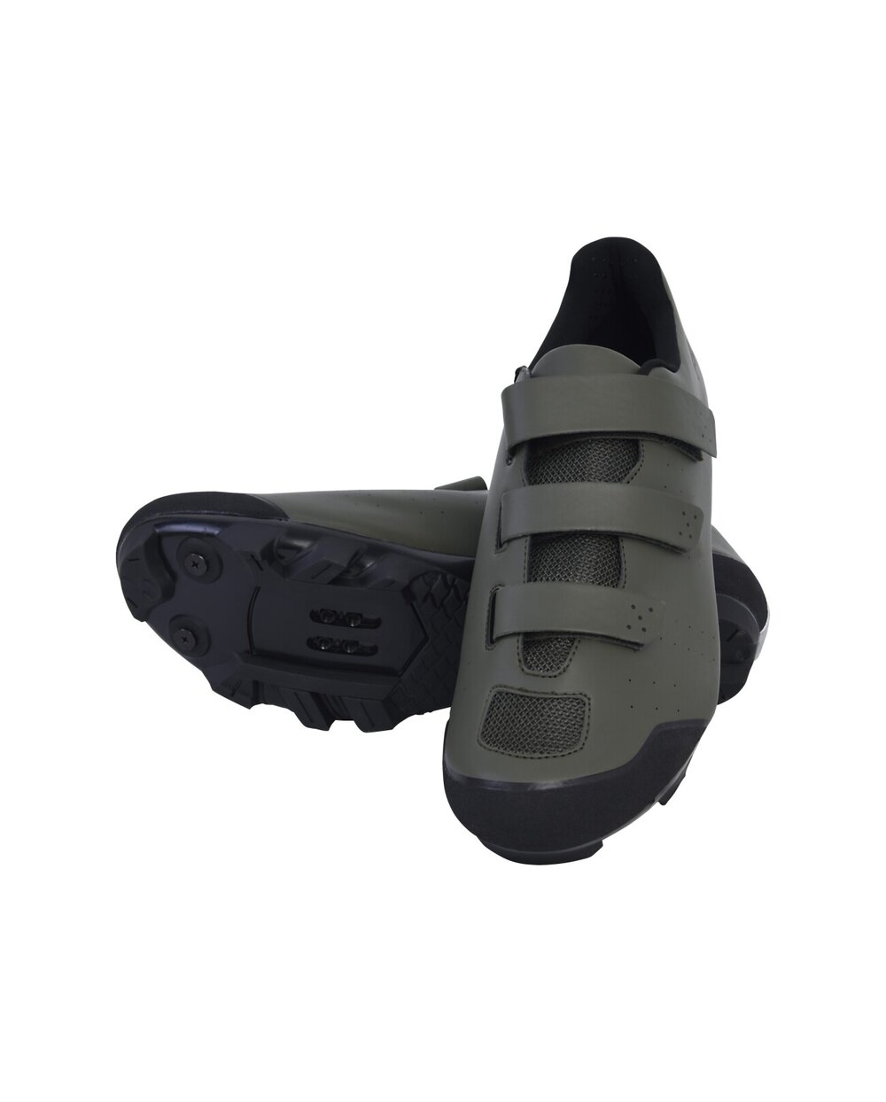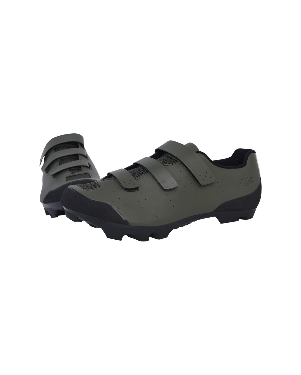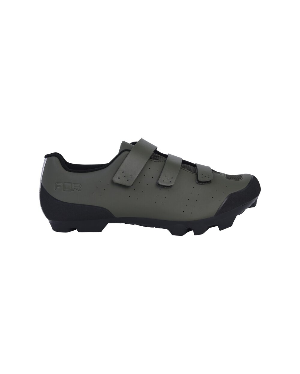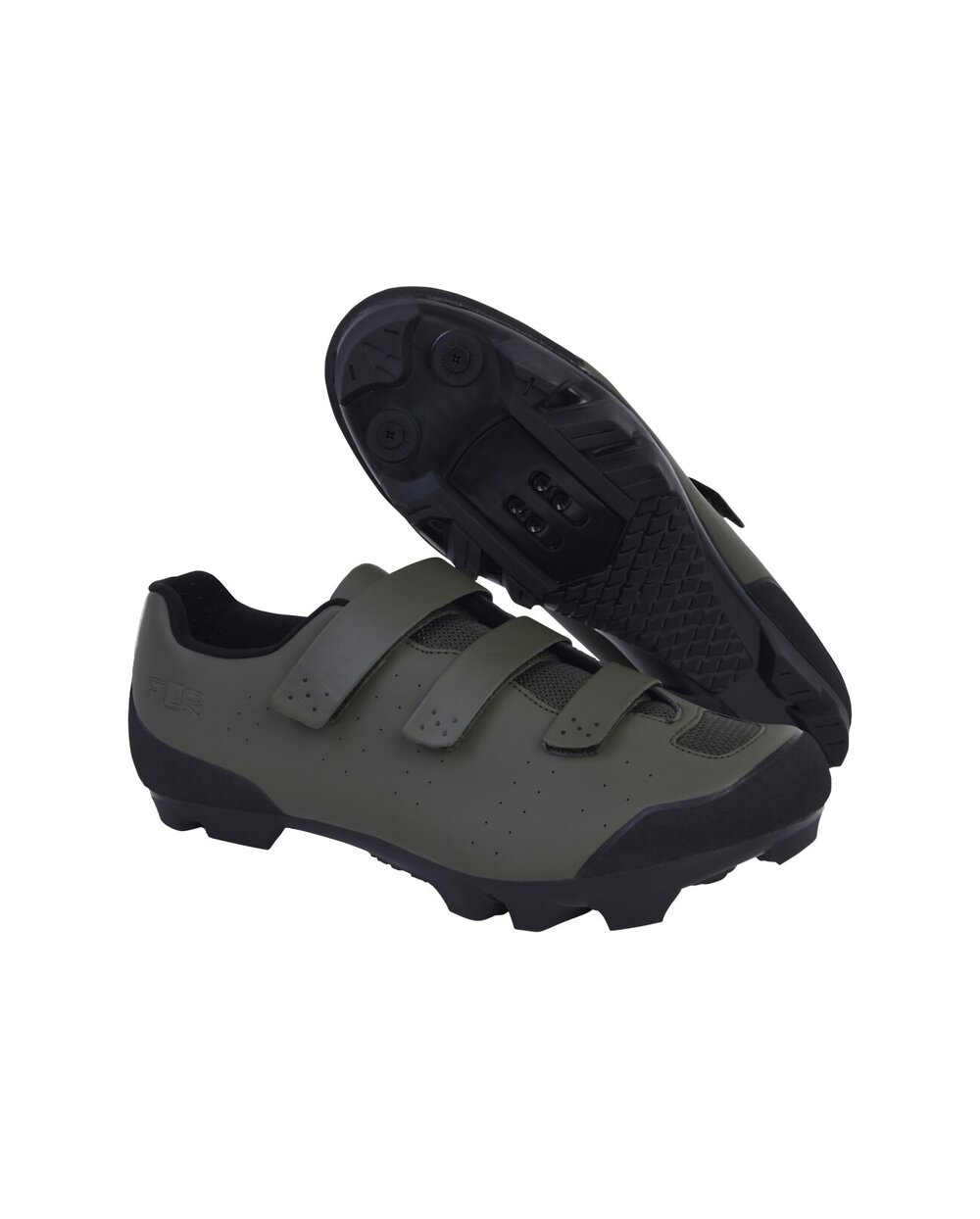 The FLR FX-1 MTB shoes are affordable cycling shoes for MTB and gravel bikes that offer high performance and comfort. The sneakers are made of synthetic material with six mesh panels that ensure excellent ventilation and keep the feet comfortable. Fastening is ensured by three low-profile Velcro fasteners, which allow precise and secure adjustment while riding.The FLR FX-1 sneakers have a nylon sole with a double density of lugs, which ensures better traction in the field. On the front part of the sole there are holes for fixing the tips for a better grip in winter conditions or during cyclocross. The inner insole is equipped with arch support to increase comfort and reduce leg fatigue during long rides. The padded tongue of the shoe is ergonomically shaped and breathable, quickly wicks away moisture and evenly distributes pressure on the foot.