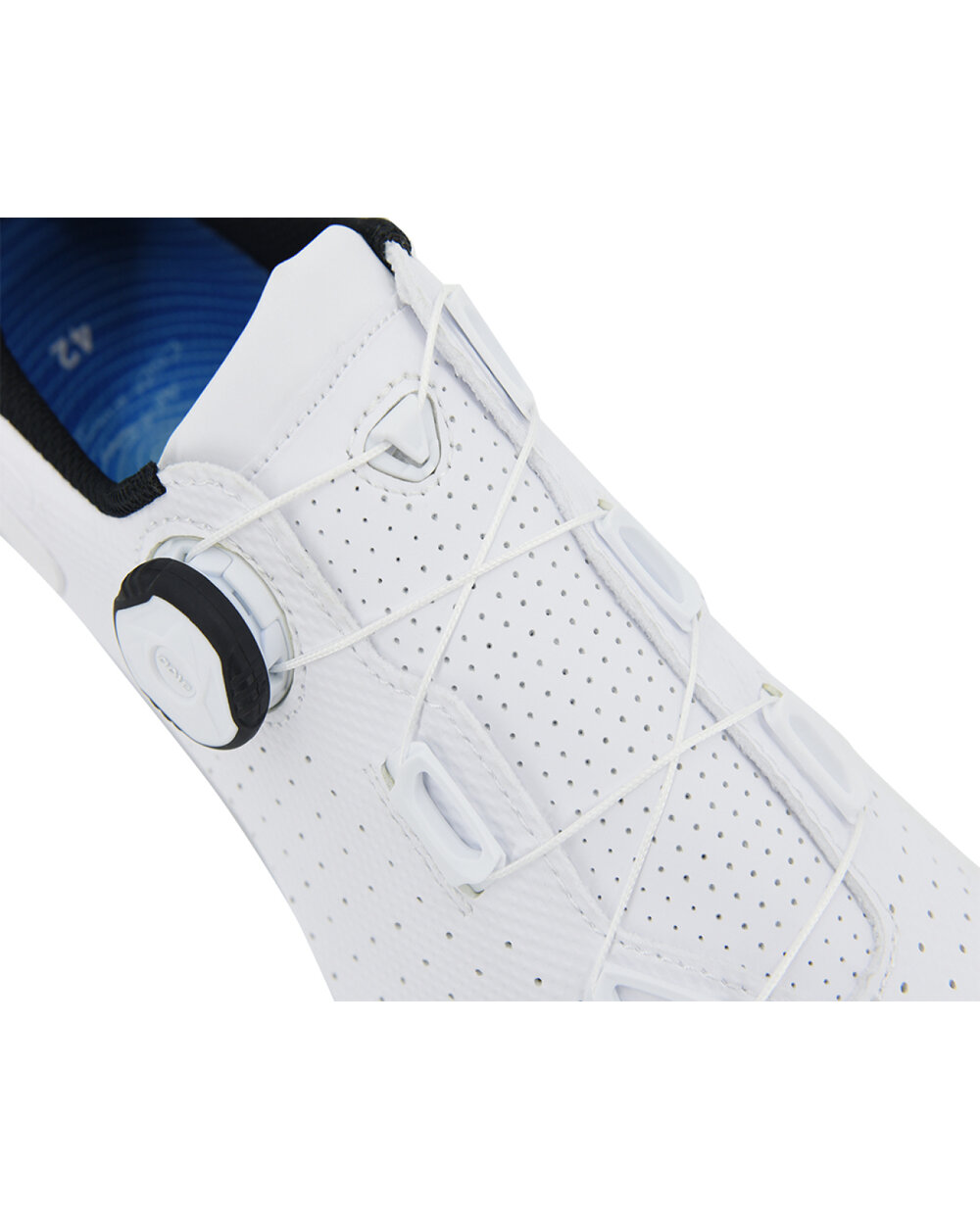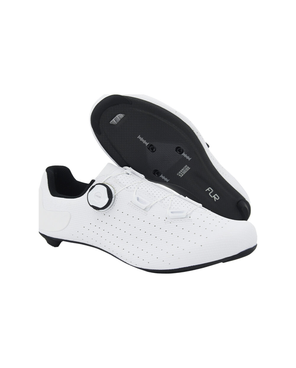 The FLR F-5 Carbon road shoes are designed for ambitious riders looking for a combination of comfort, stiffness and efficient power transmission. The light and strong R500 carbon sole ensures maximum stiffness for perfect energy transfer to the pedals, while the comfortable microfiber upper and strategically placed ventilation holes guarantee comfort even during long rides. Thanks to the ATOP fastening system, you can easily adjust the footwear exactly according to your needs.The sneakers are equipped with a reinforced heel and an ergonomic inner insole for better foot support and all-day comfort. They are compatible with the 3-hole pannier system (Look, SPD-SL, etc.) and are the ideal choice for performance and hobby cyclists who want to make the most of every pedaling.Main advantages: