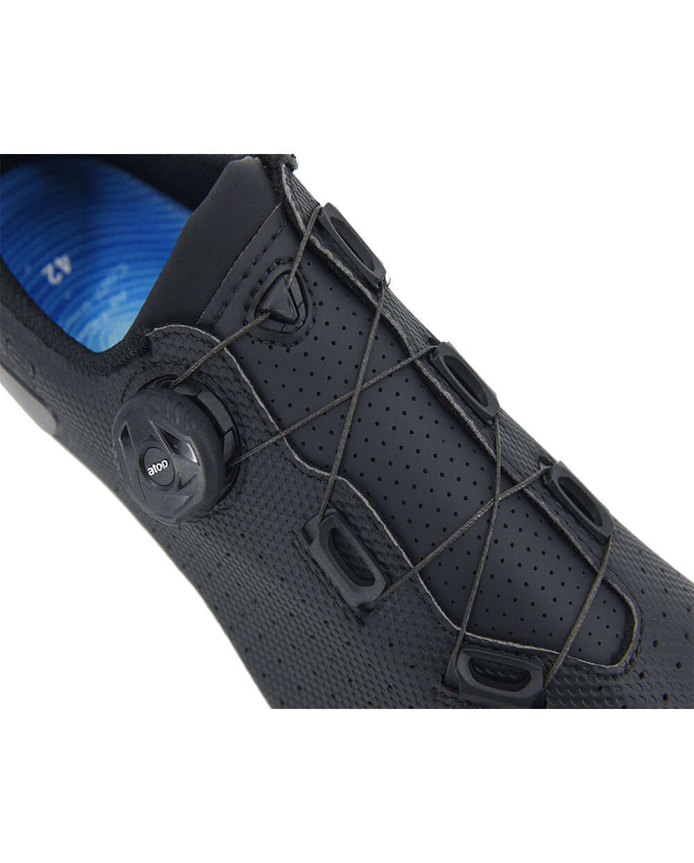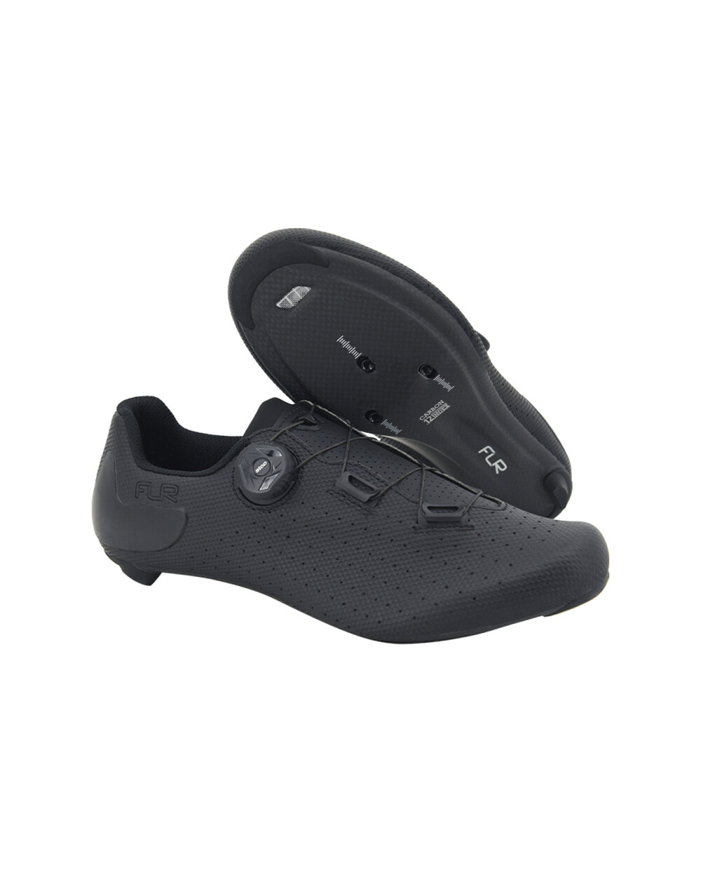 The FLR F-5 Carbon road shoes are designed for ambitious riders looking for a combination of comfort, stiffness and efficient power transmission. The light and strong R500 carbon sole ensures maximum stiffness for perfect energy transfer to the pedals, while the comfortable microfiber upper and strategically placed ventilation holes guarantee comfort even during long rides. Thanks to the ATOP fastening system, you can easily adjust the footwear exactly according to your needs.The sneakers are equipped with a reinforced heel and an ergonomic inner insole for better foot support and all-day comfort. They are compatible with the 3-hole pannier system (Look, SPD-SL, etc.) and are the ideal choice for performance and hobby cyclists who want to make the most of every pedaling.Main advantages: