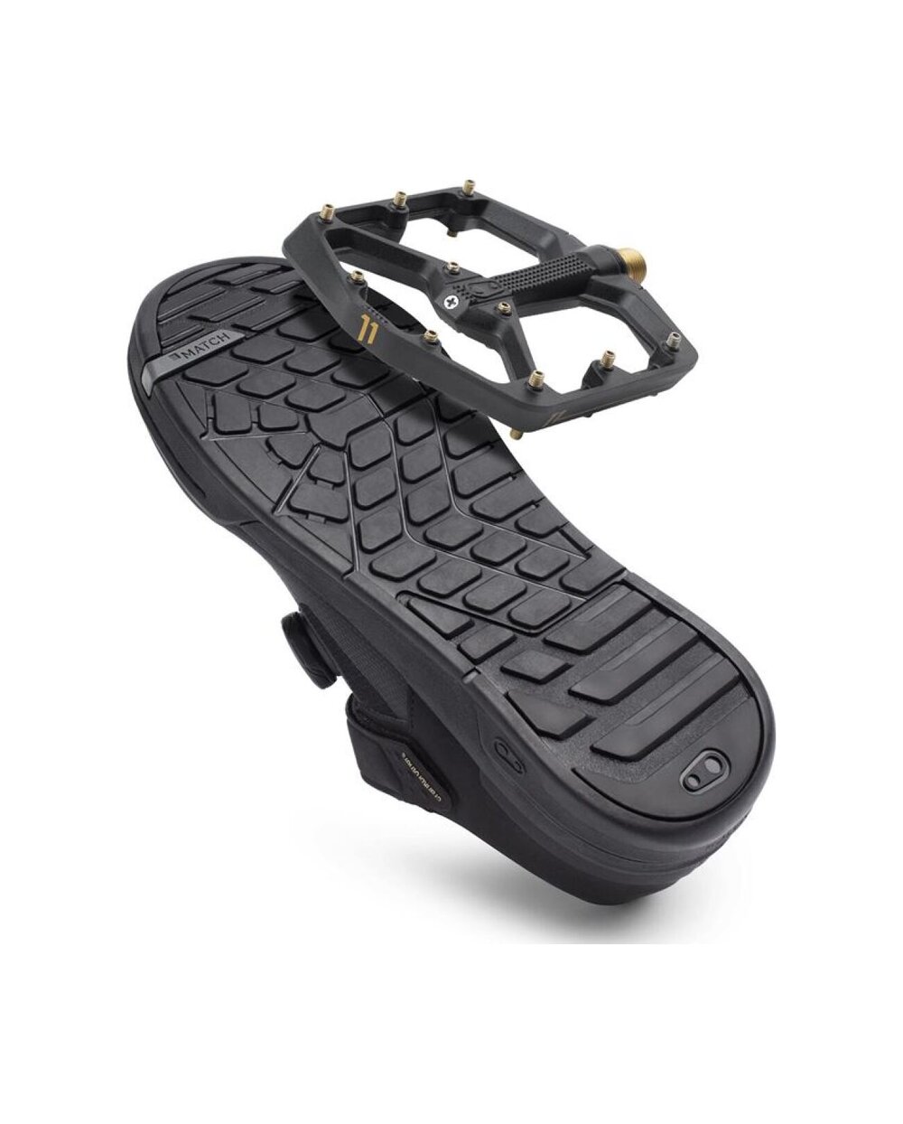 A shoe from CrankBrothers designed to the last detail for platform pedals! MC2 sole for great grip and durability, Stamp pedal pattern for great contact with the pedal, special sole zones on the toe and under the heel with a directional pattern for confident walking uphill and downhill, cushioned EVA insole for shock absorption. Easy lacing, pocket for laces to prevent them from getting tangled in the chain, ventilated mesh material, padded tongue, rubber on the heel and toe to protect the shoe and foot, anti-slip heel grip and details in CrankBrothers design. A perfectly thought-out shoe for cycling and walking next to the bike, when you can't do it anymore on the bike. The best for platform pedals. MATERIAL durable synthetic fiber, ventilated panels, reinforced rubberized zones MC2 Compound SOLE LATCHING SYSTEM, tongue with lace pocket EVA INSERT WEIGHT 400 g (size 42)