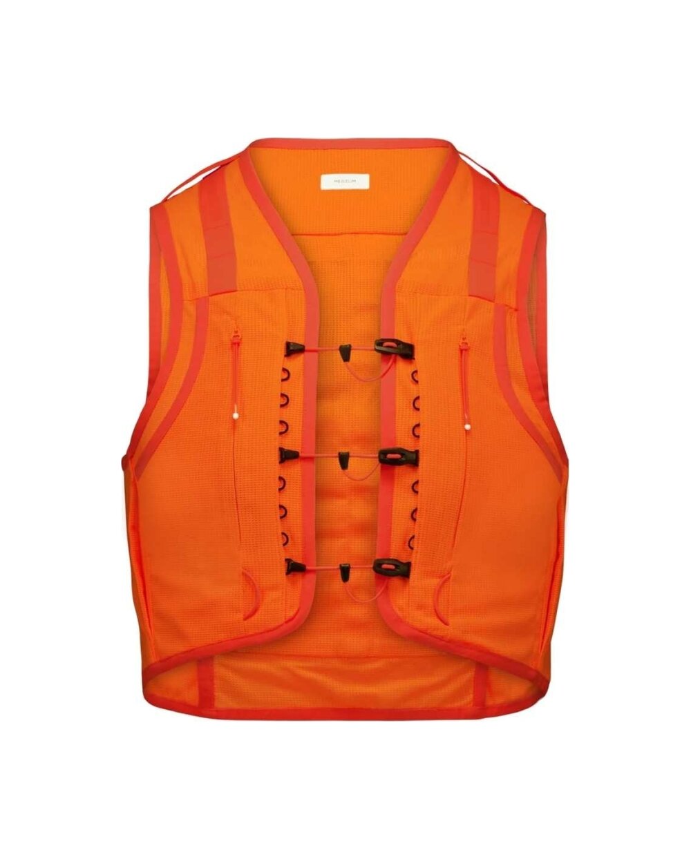 - The Ultra Vest strives to keep every long-distance cyclist fully hydrated and fully visible. It allows you to easily keep drinks and other small items close at hand and provides additional storage space for work next to the jersey Pockets. The vest is made of high-visibility fluorescent orange and has reflective details so that others can see you more easily when riding, regardless of conditions or light levels, making it an ideal choice for long-distance cyclists and racers. Shaped to complement your cycling gear, the vest uses a shorter body length so it fits easily into your jersey Pockets. With storage space in the front and back, it can easily hold up to 3 liters of liquids, so you can ride longer. In addition to Pockets for extra hydration, the vest has small, easy-access Pockets, perfect for storing a snack or a light jacket. The lightweight vest is optimized for absolute comfort even when carrying gear and has fixed adjustment points and elastic drawcords instead of a zip, so forces are more evenly distributed across the chest.
